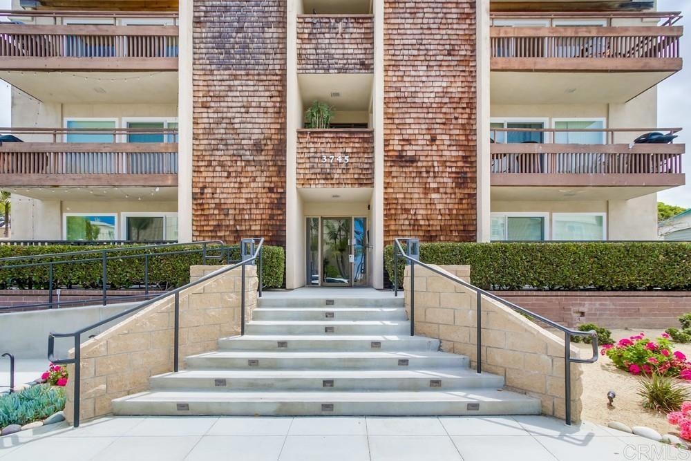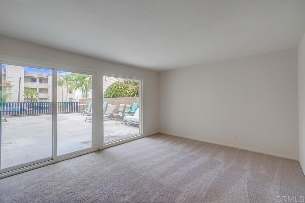 Steps from the sand at Sail Bay, this Crown Point condo is the perfect place to enjoy year-round beach life! This 2 bed, 2 bath unit is located on the ground floor (no stairs required!), has two assigned parking spaces, and offers beach access directly across the street - ideal for a primary residence or potential vacation rental. Inside, this unit features fresh paint & carpet, new interior doors, and a new dishwasher. The great room boasts plenty of natural light and direct access to a huge west-facing community patio that's perfect for soaking up San Diego sunsets. The spacious primary suite features a walk-in closet and access to the private back patio. The 1st assigned parking space is in the gated, underground garage, and the 2nd assigned parking space is off the alley directly behind this unit. HOA dues include water, trash and sewer.