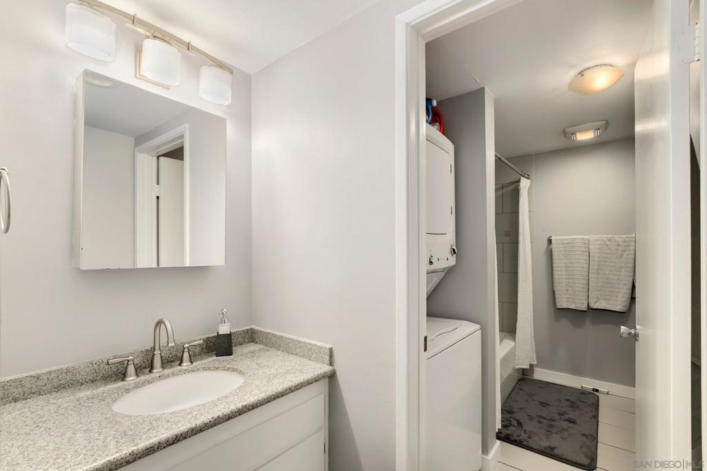 Panoramic Bay Views await! Imagine sitting on the spacious patio, soaking in the panoramic bay views and spectacular sunsets all year long. As you enter this first floor Crown Point condo, you will gaze upon gorgeous wood flooring throughout. Open the patio doors wide in the living room/dining area to let the cool breezes flow through and create the perfect indoor outdoor living atmosphere. The kitchen features crisp, white cabinetry, granite counters, stainless steel appliances, recessed lighting and an eat-at counter. The primary bedroom enjoys a spacious closet and updated ensuite bathroom. An optional bedroom has dual access to the patio with bay views. The in-unit stacked washer and dryer will take the chore out of laundry day. One parking space with storage in the underground parking garage makes parking a breeze - an asset in a beach town! Crown Point Villas is a gated community that offers its residents a premier, pet-friendly lifestyle along Crown Point Park and Mission Bay with a BBQ roof deck, spa and recreation room with a billiards table. Miles of trails plus endless water activities at Mission Bay will provide hours of outdoor enjoyment all year long. Embrace the beach lifestyle by leaving your car parked and biking to your favorite dining and shopping destinations. To see it is to love it! Complex Features: ,,,,, Equipment: Washer Sewer: Sewer Connected Topography: LL