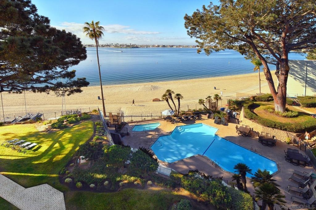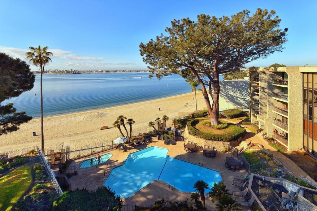 Welcome to Bay Scene—Pacific Beach’s iconic bayfront address! This top-floor penthouse offers breathtaking westerly views of Sail Bay and the Pacific Ocean, creating the perfect backdrop for your future dream retreat. With a thoughtfully designed floor plan and incredible natural light, this rare offering is a blank canvas ready for your personal touch and custom finishes. Enjoy resort-style living with exclusive access to community amenities including a year-round heated pool and spa, well-equipped fitness center, BBQ areas, clubhouse, and secure lobby entry. See Supplements... Step outside to the sandy beach and scenic boardwalk, just moments from your front door. Additional perks include a dedicated storage space, car wash station, and EV charging stations in the gated garage. HOA dues conveniently cover water, trash, cable, and Wi-Fi. This is your chance to create the ultimate coastal escape in one of San Diego’s most desirable waterfront locations.