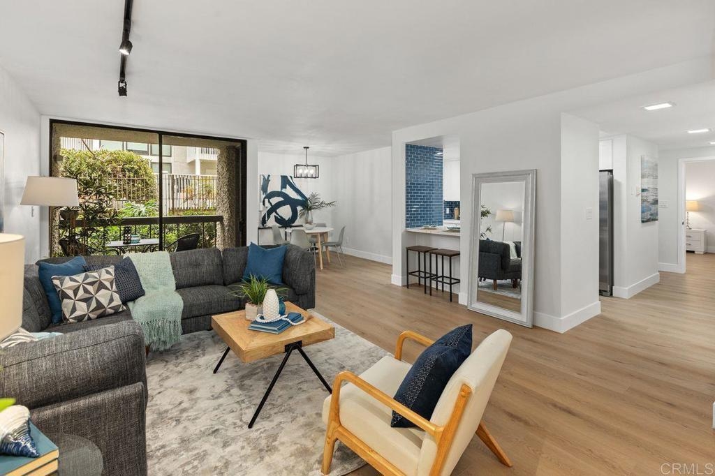 Newly Remodeled Condo top to bottom in Beautiful corner of Pacific Beach RIGHT ON SAIL BAY!. Don't miss everything this property has to offer, from new flooring and lighting to complete new kitchen and baths. Enjoy the amenities of the sparkling pool and spa while taking in the scene of the Bay activities. Only a few blocks away from the highlights that Pacific Beach has to offer, this complex is just out of the way from the hustle and bustle of beach going life so you can enjoy a quiet sanctuary whenever needed. This unit comes with 2 assigned underground parking spaces and extra storage spaces.