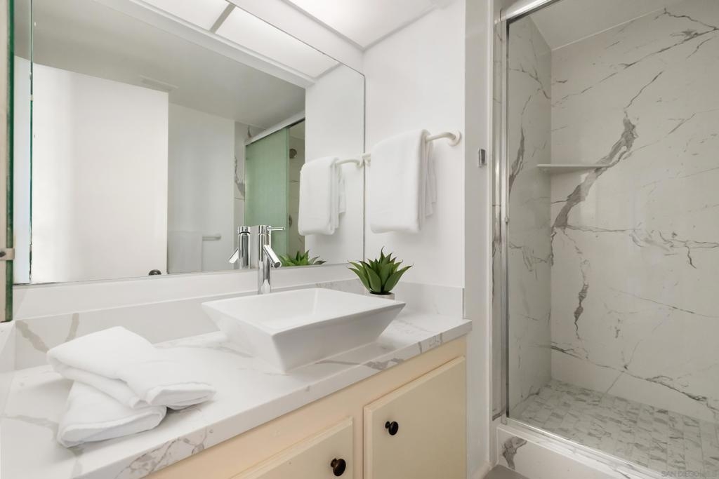 Bayfront Luxury Living at Bay Scene Welcome to luxury living at its finest in one of the most coveted areas of Mission Bay—just steps away from the boardwalk, beach, and water! This bay-front condominium has 2-bedroom with 2 full bathrooms. Key Features: Open-Concept Living: Generously sizes living and dining areas with abundant natural light. Private Balcony: Enjoy panoramic views of Sail Bay and the Pacific Ocean. Perfect for soaking in sunsets. Primary Suite: Features an ensuite bathroom and walk-in closet. Additional Bedroom: Versatile space suitable for guests or a home office. In-Unit Laundry: Convenient side by side washer and dryer hookups Parking: Includes two assigned underground parking spaces Building Bay Scene is a five-story complex with this condo being on the top floor with resort-style amenities including clubhouse, heated pool, spa, exercise/game rooms, BBQ areas, with charging stations in garage, fire pit and direct access to Sail Bay paths.