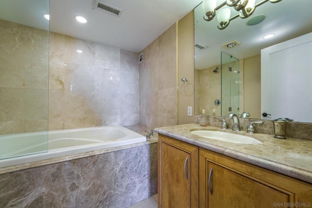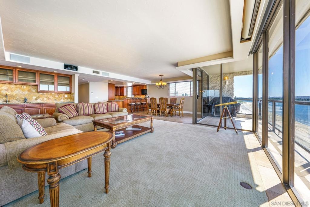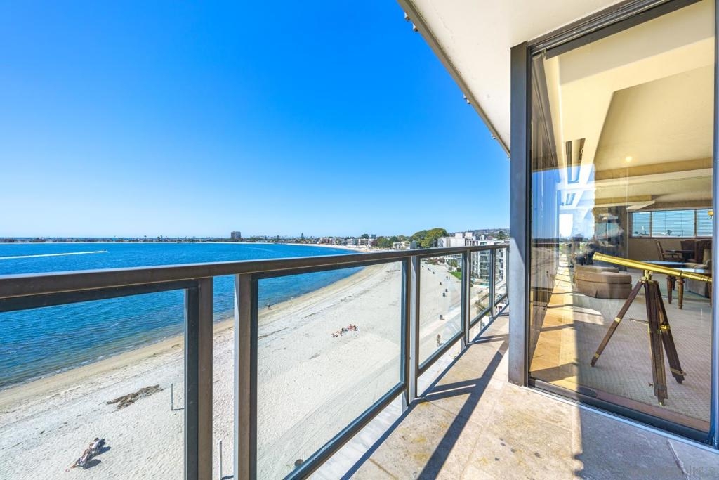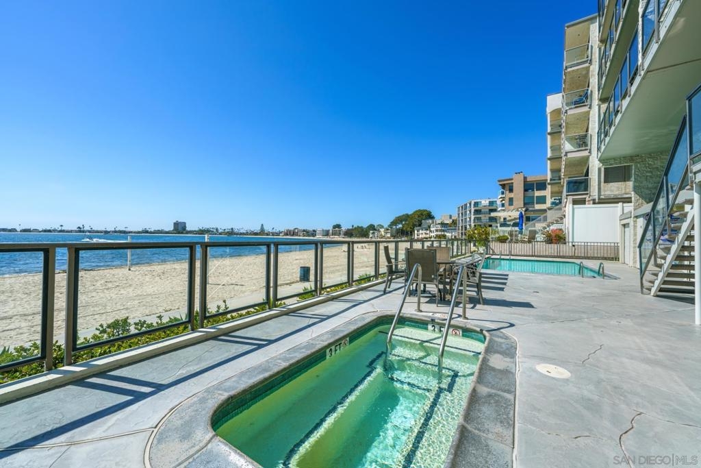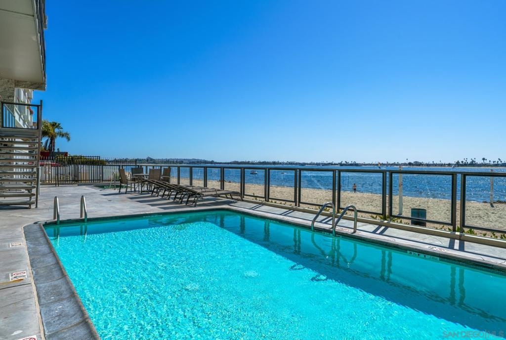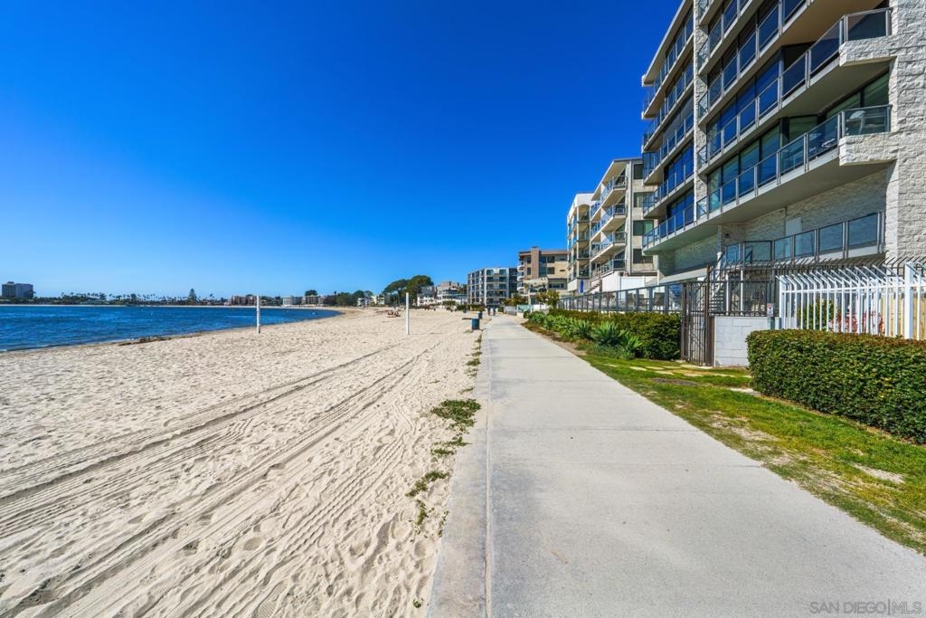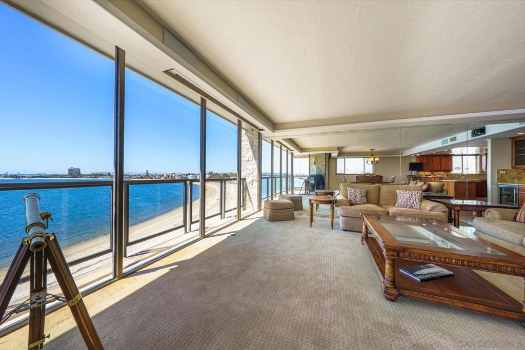 FIRST CLASS LIVING - $200,000 remodel insures you get top grade finishes, fixtures, cabinets, and appliances (Subzero, Miele, Viking!). One of the finest buildings directly on Riviera Beach on Mission Bay emulates life on the Mediterranean!! Breathtaking water views including the sun setting in the Pacific all reflected by an entire Living Room wall fitted with floor to ceiling mirrors. Classic marble flooring in living areas and luxury carpeting in the bedrooms. They thought of everything here!! App operated Hi-tech entertainment center includes huge drop down movie screen & Sony projector, with 2 zone surround sound that extends even to the master bedroom. Huge TV in the master bedroom with surround sound speakers for music and VCR and streaming options. Soffit lighting surrounds the living areas and drop down remote control shades soften direct sunlight. Furniture included in sale includes Thomasville sofas and tables in the living area and a custom dining room set with 6 chairs and an extension leaf. Master Bedroom includes custom Ashley King Size wooden bed set and side tables with a new $4000 Stearns & Foster mattress, and a large armoire, and a TV entertainment audio-visual credenza. Kitchen has a TV attached to the wall. Wood blinds throughout. The wet bar offers a Subzero Wine Cooler. Cedar lined master closet and 2 safes. This is a classy place, so don't miss it if you want the best on Mission Bay!!