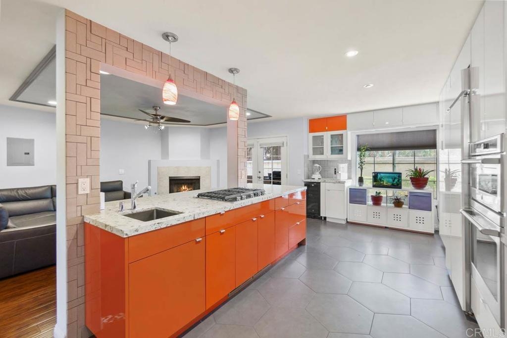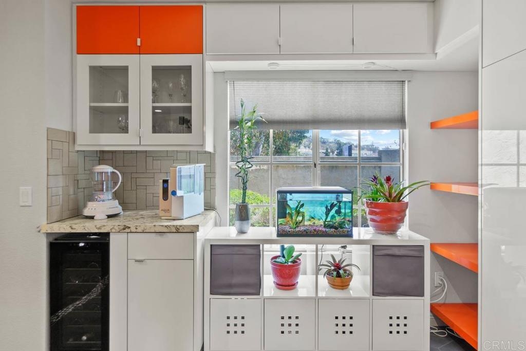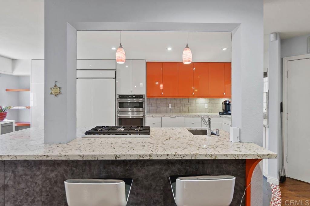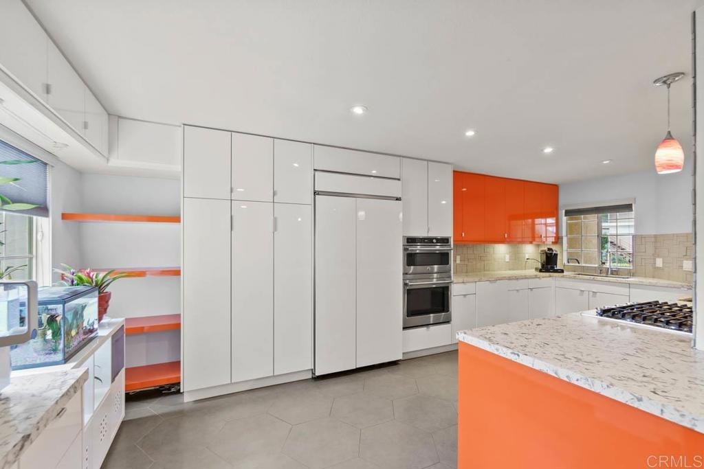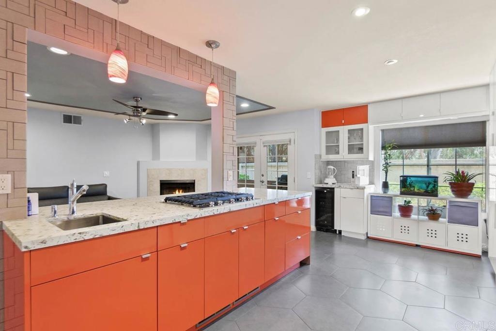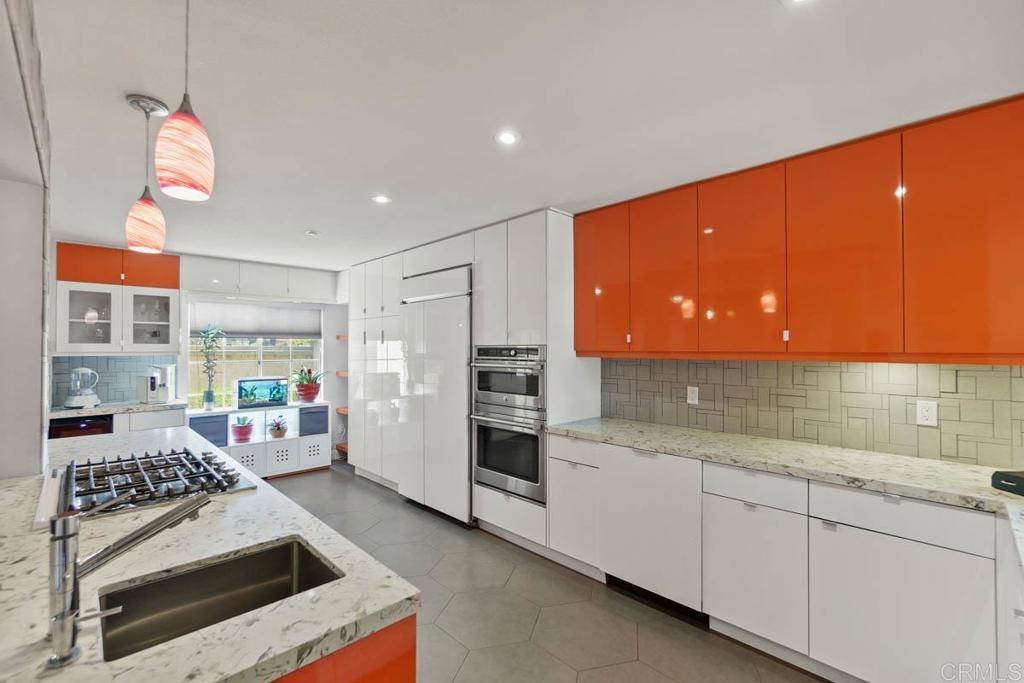 This lovely home has been completely renovated & is in an extremely convenient location just west of the I-5 in beautiful Pacific Beach. Kitchen has new custom cabinetry with Quartz counter tops and full tiled backsplash from Italy with pull out drawers w/ lighting inside cabinetry, crafted utensil drawer and 2 sinks. Upgraded appliances, 5 burner gas range w/ Dacor raised ventilation, built-in combination convection wall oven and microwave plus wine refrigerator. Kitchen is open & spacious with an island which opens up to the living room, gas fireplace & French doors to the breezy balcony which has extra storage space. Bathrooms also completely remodeled with new vanities, counter tops, lighting, mirrors & custom tile work. New dual pane windows in the master & master bath plus A/C & full size washer and dryer.