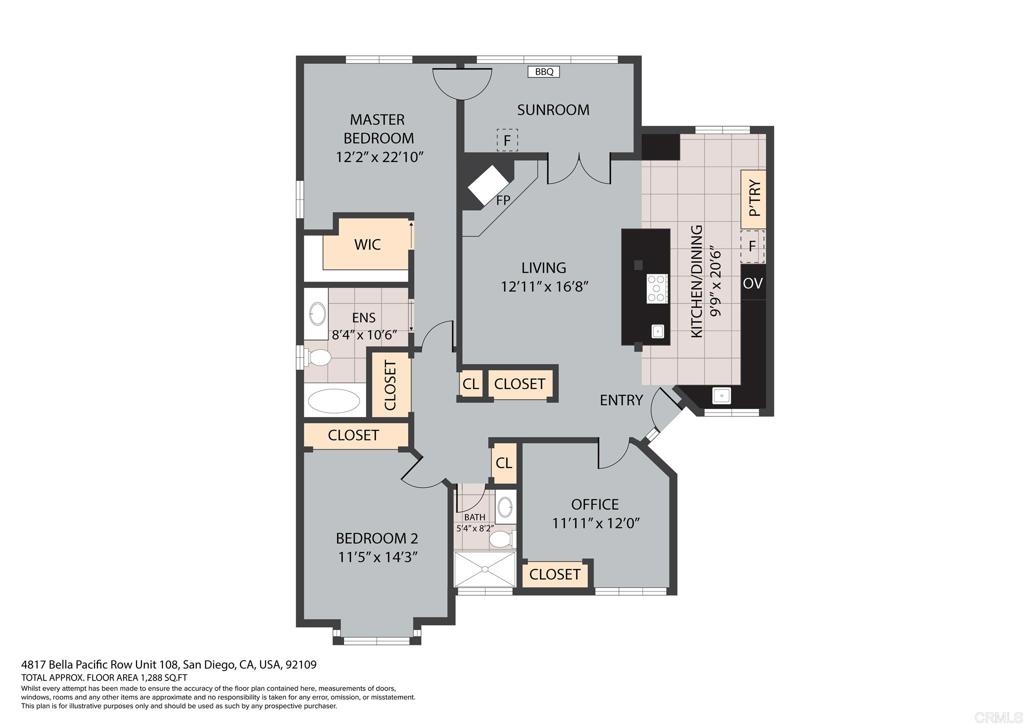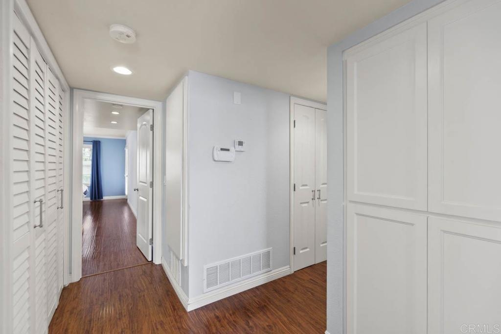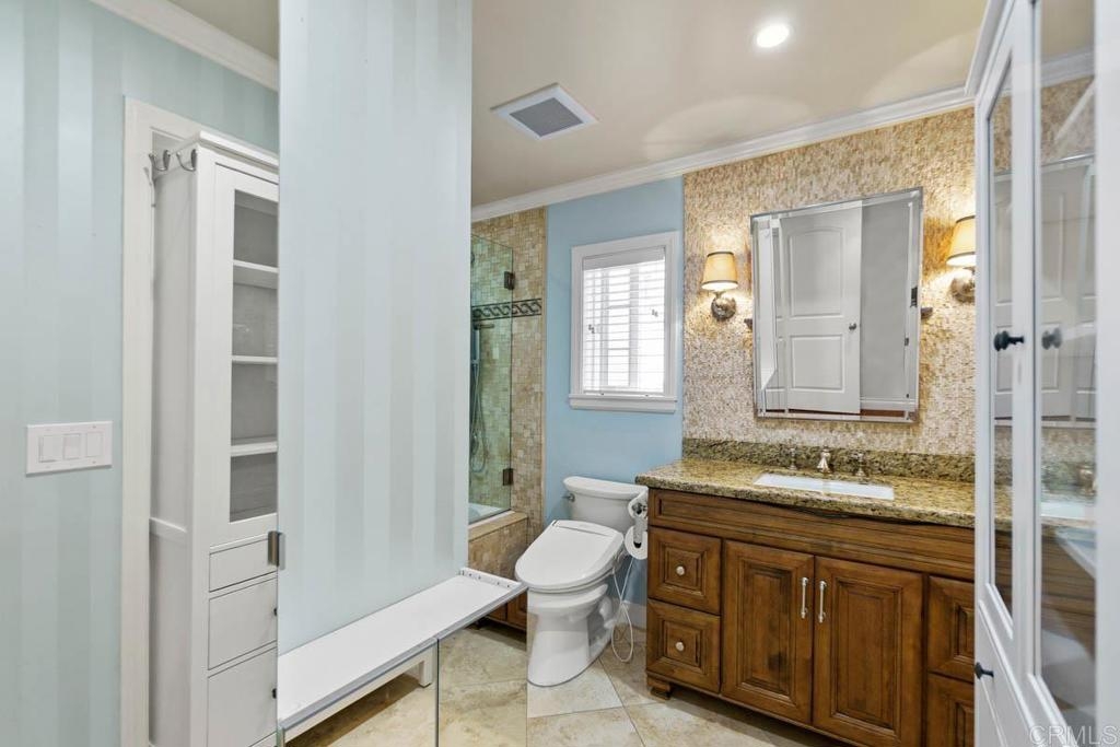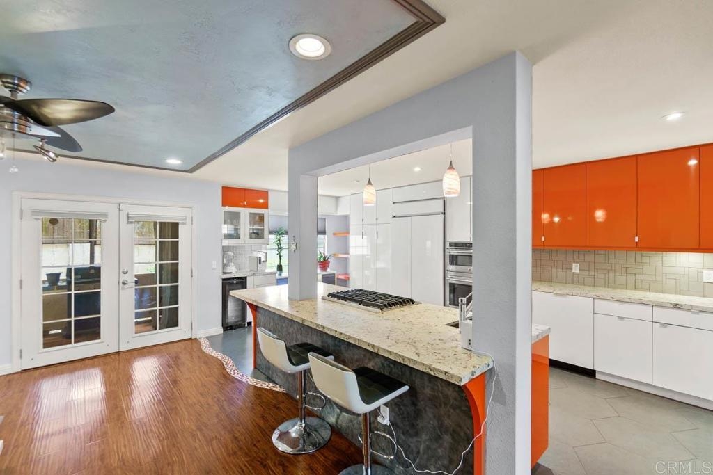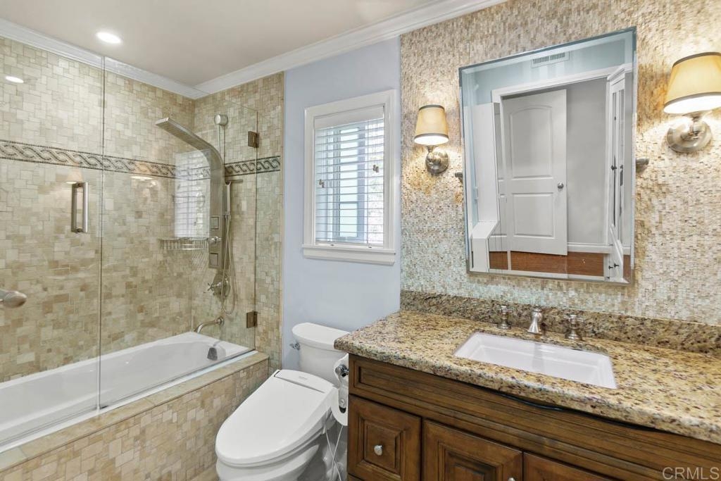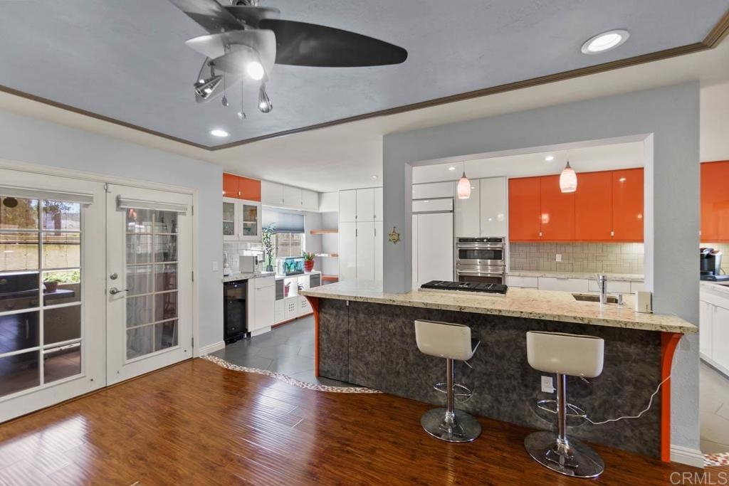 This lovely home has been completely renovated & is in an extremely convenient location just west of the I-5 in beautiful Pacific Beach. Kitchen has new custom cabinetry with Quartz counter tops and full tiled backsplash from Italy with pull out drawers w/ lighting inside cabinetry, crafted utensil drawer and 2 sinks. Upgraded appliances, 5 burner gas range w/ Dacor raised ventilation, built-in combination convection wall oven and microwave plus wine refrigerator. Kitchen is open & spacious with an island which opens up to the living room, gas fireplace & French doors to the breezy balcony which has extra storage space. Bathrooms also completely remodeled with new vanities, counter tops, lighting, mirrors & custom tile work. New dual pane windows in the master & master bath plus A/C & full size washer and dryer.