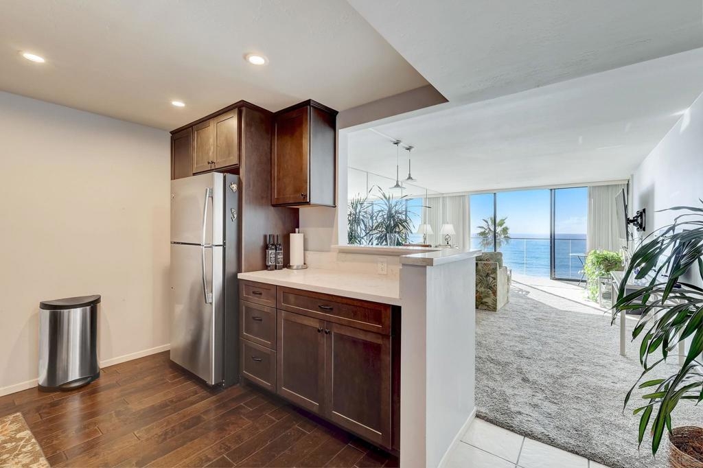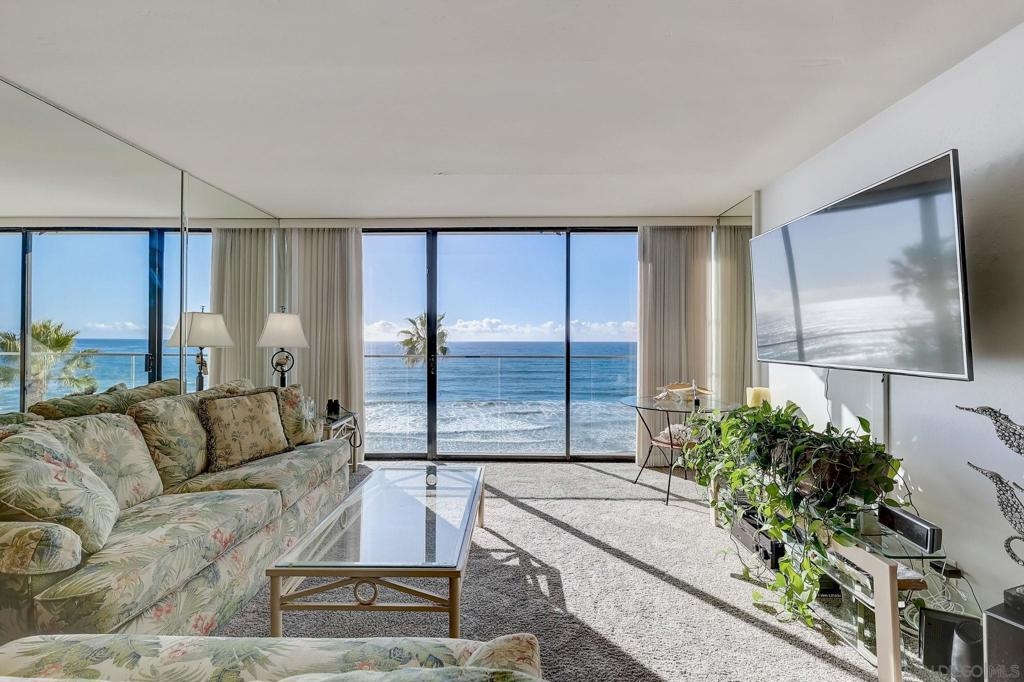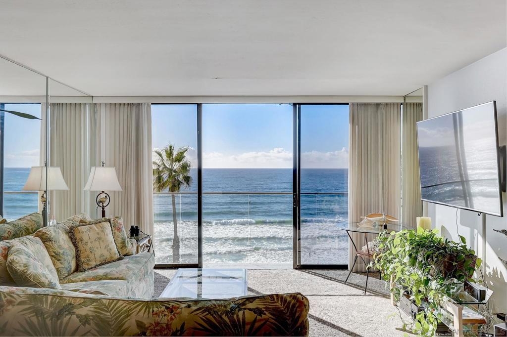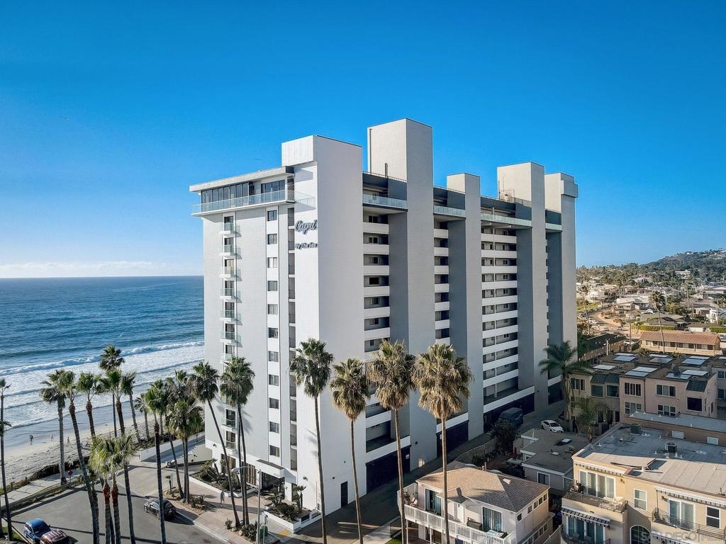 Wake up to breathtaking white water ocean views, the sound of crashing surf from your living room, gazing out at palm trees and walking trails, it’s the only 1 Bdrm Ocean Front Condo for sale at Capri in nearly 2 years! Panoramic Ocean views or city lights from the rooftop deck or Penthouse floor. Fully remodeled, lightly enjoyed as a 2nd Home. Stroll to restaurants, coffeeshops, stores, open air events. High end amenities: Concierge, 24 hr. security, gated secure parking, pool/spa, sauna, roof top sun deck w/bbqs & breathtaking views for celebrating like Lifestyles of the Rich and Famous! This is an incredibly rare high-rise building in the coastal area. Options for short term rental! This rare jewel allows access to the beach right in front of the building so you can walk for miles on the sand or the boardwalk passing shops, beachfront cafes and beautiful homes. One Of the more popular surf spots in San Diego is 1 block to the North on Law Street. Unit 411 is in the North building and has some nice upgrades from the South building, such as double entry doors, forced air heating with ducting. Short term rental options! You can work with onsite prop mgt company in the lobby or a dozen others in the area who can handle bookings, maintenance and guest calls, this is a true jewel in Capri By The Sea. Why is having a waterfront high-rise with 180 degree ocean view in San Diego so rare? That’s because in 1976 the State Legislature passed the Coastal Act, which made the Coastal Commission a permanent agency with broad authority to regulate coastal development. Since then the “Coastal Zone” limits the height of buildings and structures on or near the coast to 30 feet! No high rise coastal buildings have been built in nearly 50 years, so you won’t find many condos with a view like this one. Priced even more competitively than those sold in 2022, full service and a viable Short Term Rental, grab this opportunity to live the dream while you can!