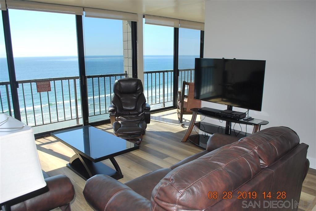 Extremely Rare Capri By The Sea SOUTH CORNER above the third floor. Just has spectacular 180+ views La Jolla coastline to Pier and Southern coast line as well as Mission bay, Downtown to Coronado Bridge. A South upper corner has been for sale in 15 years. Capri By The Sea is a PB landmark building and San Diego's only oceanfront highrise condominiums. Capri By The Sea is one of few that states in the CC&R's that 3 night min. vacation rental is OK. So vacation/second home it or primary. Being offered fully furnished. Community Washers and dryers are on the South End of each floor making it very convenient for this condo owner/guests. HOA is currently replacing the Juliet balcony railings to glass and completely repainting the building. Buyer can install an individual EV charging station in the assigned parking space. HOA owns the East Lot behind the Capri and annual additional parking can be purchased by homeowners- space availability is first come first serve. Complex Features: ,,,,,, Equipment: Range/Oven Other Fees: 0 Sewer: Sewer Connected Topography: LL Frontage: Ocean/Bluff, Ocean/Sand