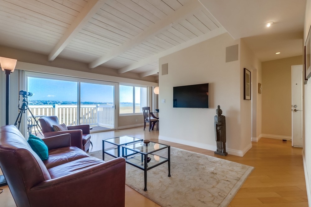 VIEW 3-D TOUR. Stunning Mission Bay & Fiesta Island Panoramic Views from this 2nd story 2BR/2BA single-level,End-Unit condo. Arguably the best location in the building at the far north end with endless views of Mission Bay and the wildlife preserve from your living & dining room, kitchen, and master suite.(amazing for bird watchers) Lovely, bright & airy floorplan, sizable balcony, wood laminate floors, beam ceilings in living room.Updated kitchen & bathrooms, washer/dryer in this unit. Great complex w/ Great complex with swimming pool & spa, fitness center, sauna, BBQ grills and much more.. Neighborhoods: Bay Colony Complex Features: ,,,,, Equipment: Dryer, Washer Other Fees: 0 Sewer: Sewer Connected Topography: LL Frontage: Bay, Lagoon/Estuary, Open Space