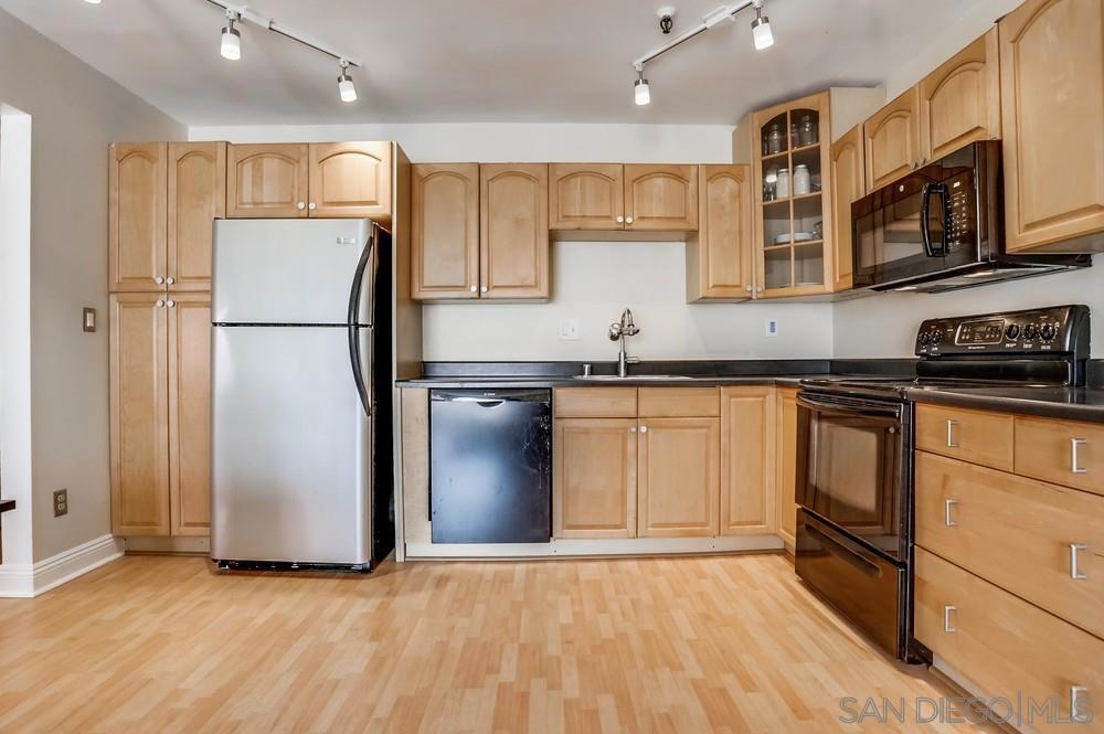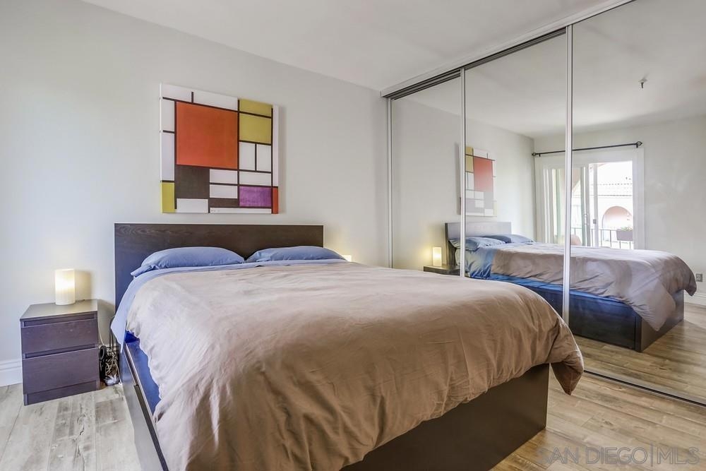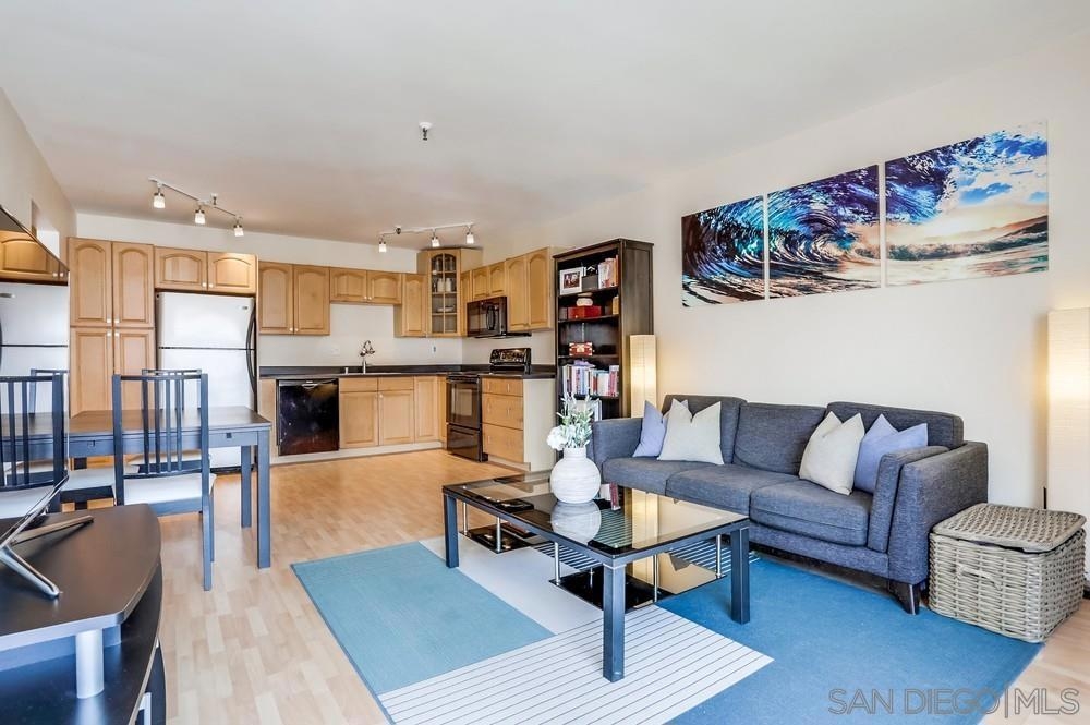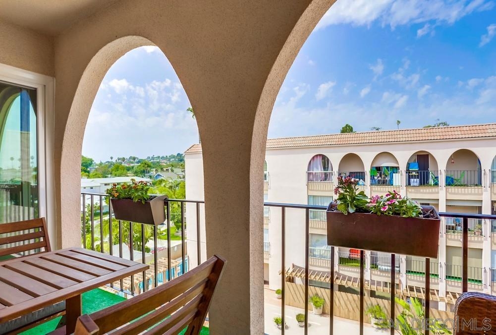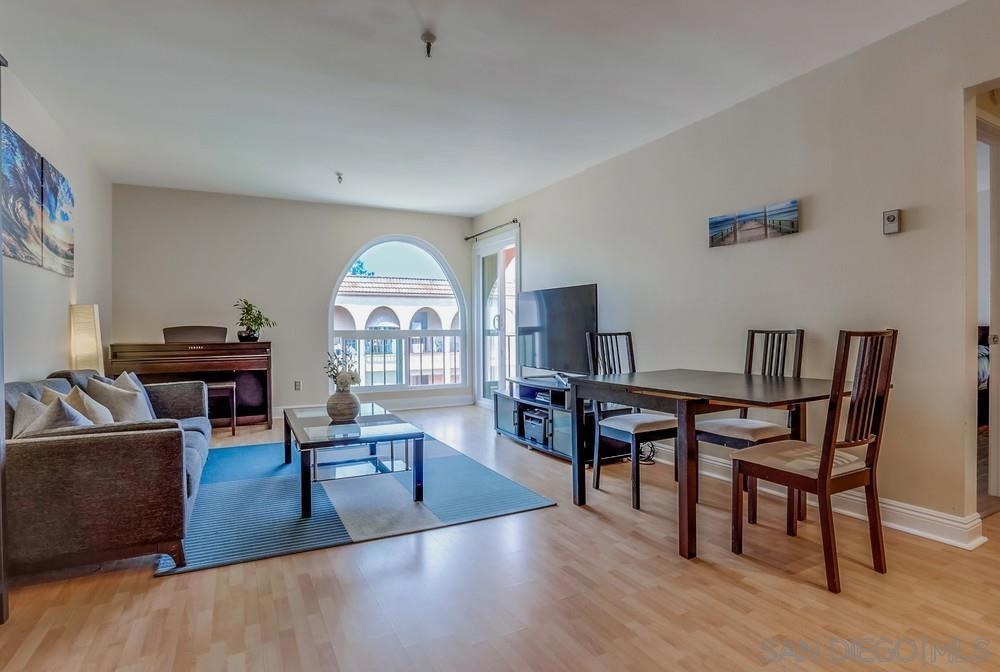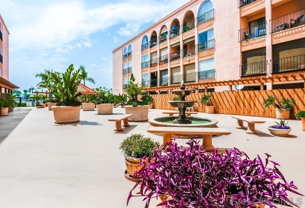 Top level Pacific Beach condo with VIEWS, brand NEW vinyl windows and sliders and dedicated Tesla EV charging station! Only shares a wall with one neighbor! This peaceful home is perfectly situated near all Pacific Beach has to offer - Sprouts, Trader Joe’s, Better Buzz coffee, world-renowned beaches, entertainment and more. Step inside this intentionally planned top-floor condo and find an open and flowing interior living layout with abundant natural light, stylish laminate floors, a neutral color scheme and expansive living room and dining area with gorgeous arched window and balcony access. The open concept kitchen features richly toned solid surface countertops, wood cabinetry with ample storage, stainless-steel refrigerator, electric range/oven, built-in microwave, dishwasher, pantry cabinet, and custom track lighting. Enjoy the lovely patio and dining alfresco, while admiring the beautiful courtyard and twinkling city light views! Relax in the community swimming pool, soothing jacuzzi, billiard room, gazebo or entertain by the outdoor BBQ and lush pool deck area with tropical plantings. If you need rest, retire to your blissful bedroom, with oversized mirrored closet and direct access to the private balcony overlooking the peaceful, interior courtyard. The full bathroom features a convenient shower/tub combo, wall cabinet, and chic storage vanity. Other features: assigned/gated underground parking storage cabinet, proximity to shopping, nightlife, schools, parks, cafés, I-5, Costco and entertainment! Top level Pacific Beach condo with VIEWS and brand NEW vinyl windows and sliders! Only shares a wall with one neighbor! Conveniently located in a quiet and sought-after gated community, this peaceful home is perfectly situated near all Pacific Beach has to offer - Sprouts, Trader Joe’s, Better Buzz coffee, world-renowned beaches, entertainment and more. Step inside this intentionally planned top-floor condo and find an open and flowing interior living layout with abundant natural light, stylish laminate floors, a neutral color scheme and expansive living room and dining area with a gorgeous arched window and balcony access. The open concept kitchen features richly toned solid surface countertops, wood cabinetry with ample storage, stainless-steel refrigerator, electric range/oven, built-in microwave, dishwasher, pantry cabinet, and custom track lighting. Enjoy the lovely patio and dining alfresco, while admiring the beautiful courtyard and twinkling city light views! Relax in the community swimming pool, soothing jacuzzi, billiard room, gazebo or entertain by the outdoor BBQ and lush pool deck area with tropical plantings. If you need rest, retire to your blissful bedroom, with oversized mirrored closet and direct access to the private balcony overlooking the peaceful, interior courtyard. The full bathroom features a convenient shower/tub combo, wall cabinet, and chic storage vanity with sleek hardware. Other features: assigned and gated underground parking with dedicated Tesla EV charging station, storage cabinet, proximity to shopping, nightlife, schools, parks, cafés, I-5, Costco, Target, countless entertainment options, and much more! Call now for a private and exclusive tour! Complex Features: ,,,,,,, Equipment: Fire Sprinklers Sewer: Sewer Connected, Public Sewer Topography: LL Frontage: Open Space
