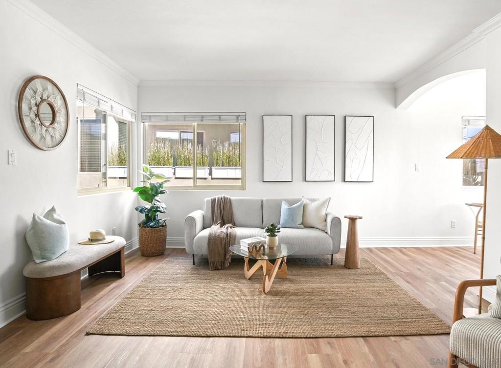 Perched in a prime Pacific Beach location just blocks from the sand, this top-floor corner residence delivers light-filled coastal living with the added privacy of no neighbor downstairs. The open and airy floor plan is enhanced by fresh interior paint, updated LVP flooring, and dual-pane windows that capture ocean breezes and abundant natural light. The kitchen is thoughtfully appointed with stainless steel appliances, granite countertops, and custom cabinetry. Both bedrooms feature walk-in closets, and the home is complete with in-unit laundry, a private one-car garage with extra storage, an additional parking space, and access to a shared storage room. The gated, pet-friendly community offers a BBQ courtyard and impressively low HOA fees. Surrounded by popular cafés, dining, shopping, and local entertainment, this well-kept condo is perfectly suited for full-time living or a low-maintenance coastal retreat. Some additional recent upgrades in the complex include: New roof (2020), New windows on west facing wall (2020), New stucco, west-facing wall (2021) Water heater replacement (2022), Termite treatment (Feb 2023), Fence repairs/replacements (May 2022 & Oct 2024), New water meter (2022)