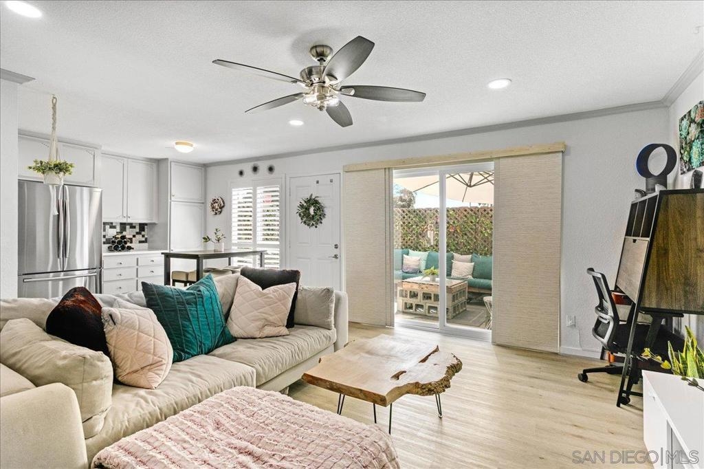 Here is a great opportunity to own a condo near the beach in 92109 with a low HOA! The inviting open and bright floor plan of this 1 BR 1 BA Pacific Beach home boasts a spacious bedroom and living areas with recent renovations throughout. Recent upgrades include a new bathroom, Luxury Vinyl Flooring, baseboards, light fixtures/ceiling fans, stainless steel farm sink, paint, window coverings, and sliding barn door. The large private fenced patio has its own entrance and comes with custom built furniture. Plus there is smaller patio in the back with extra storage and direct access to the community pool. Don't worry about parking with an assigned 2 car tandem carport with an additional secured storage cabinet. Small secured complex in a prime location for quick access to beaches, shopping, restaurants, Mission Bay, golf courses, and freeways. This unit is a great home, 2nd home, or investment! Come take a tour of La Casa Villa!