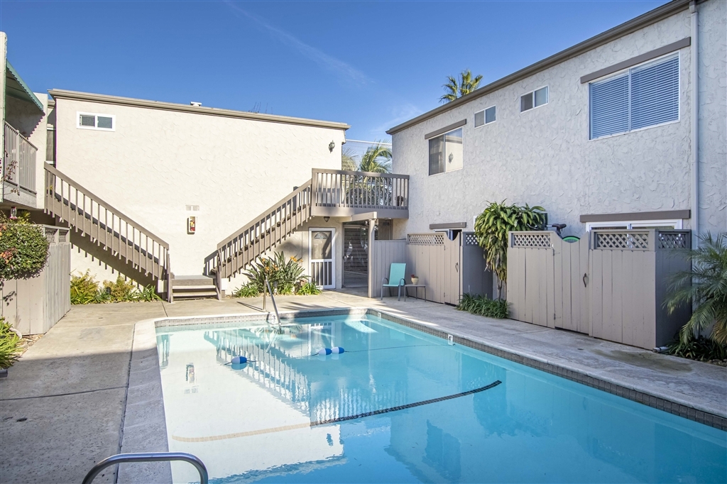 Remarkable and remodeled condo in PB with tasteful modern features. Boasting stainless steel appliances, quartz countertops, brand new flooring, vinyl windows & sliders, bathroom, and more. Unit has a large private and fenced patio in the front and smaller patio in the back with direct access to the community pool. This unit is in a prime location for quick access to beaches, shopping, restaurants, Mission Bay, and freeways. Great home, 2nd home, or investment! Don't miss this opportunity! Neighborhoods: Pacific Beach Complex Features: ,,, Equipment: Range/Oven Other Fees: 0 Sewer: Sewer Connected Topography: LL