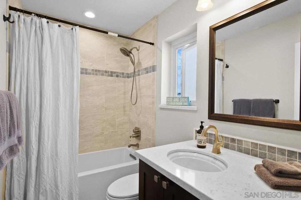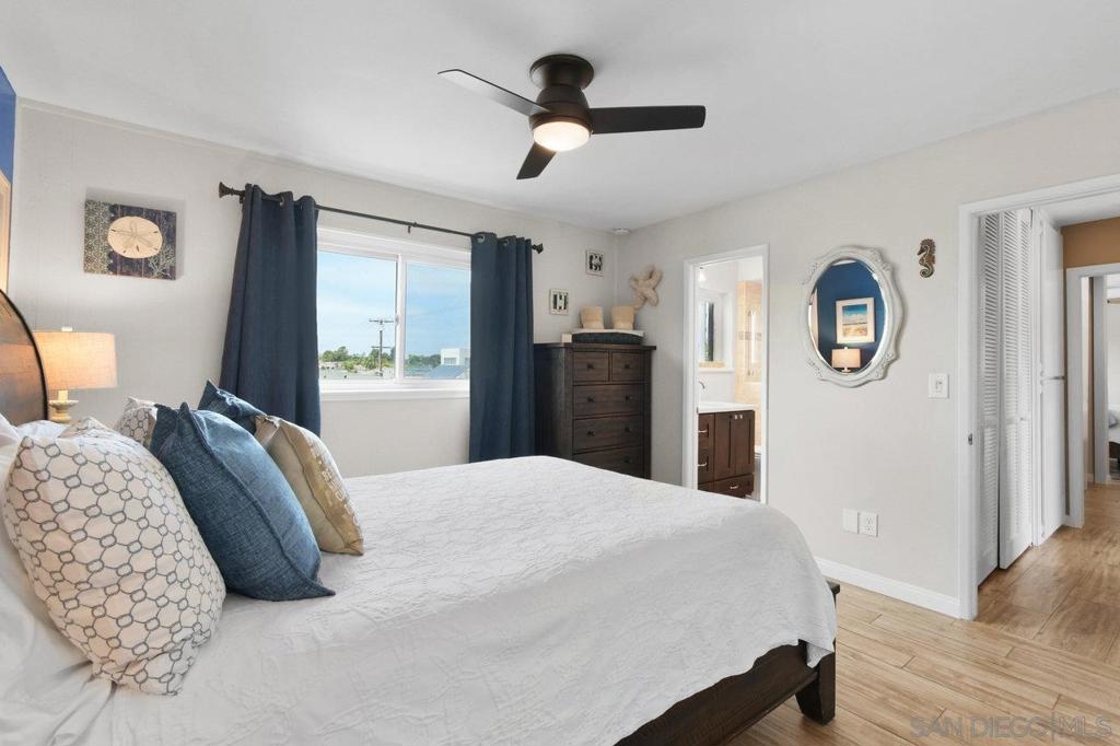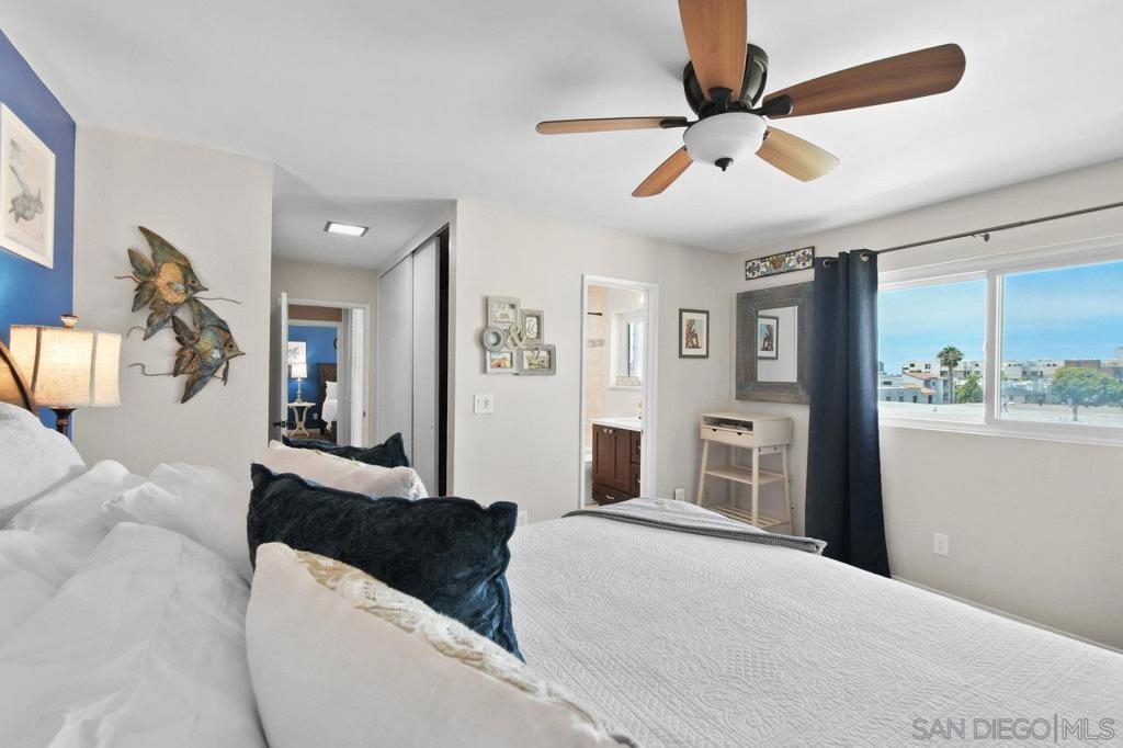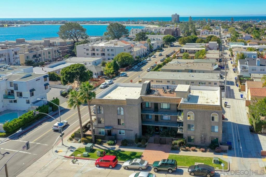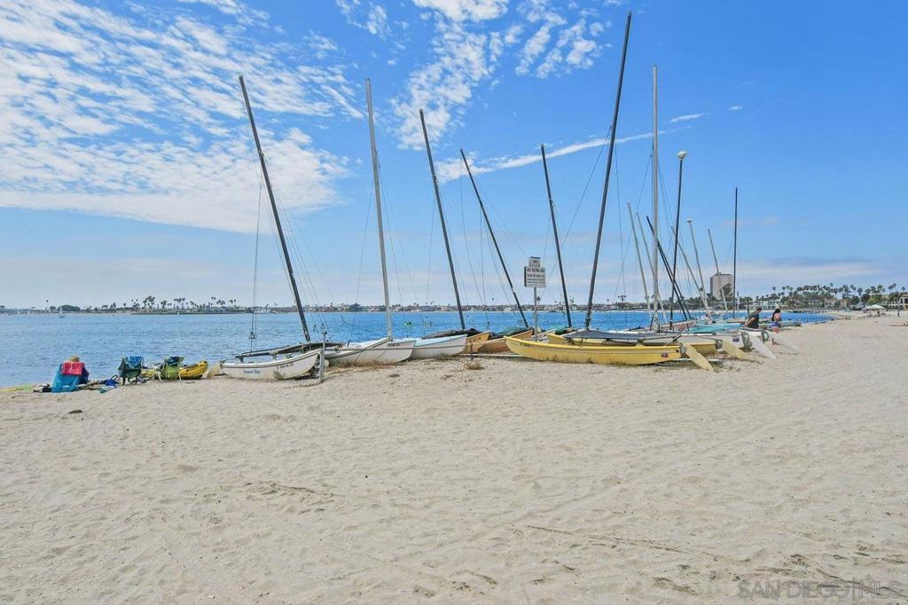 Location, location, LOCATION... live the dream! Just blocks to the beach, and a half-block to Mission Bay, Fanuel Park, and the scenic Sail Bay boardwalk, this stunning top-floor 2 bed/2 bath condo offers the best of coastal San Diego living. Just inside you'll discover a quiet interior unit with beautifully remodeled kitchen, two spacious primary bedrooms with remodeled ensuite bathrooms, and in-unit laundry... all in an elevator-served third-floor setting. Head up to the rooftop deck to take in unforgettable sunsets, peek ocean views, and front-row seats to SeaWorld’s summer fireworks. But wait, there's more: TWO dedicated parking spaces—one in the garage and one in the driveway—are an incredibly rare bonus this close to the sand. Short-term rentals currently allowed! The gated 8-unit, self-managed building offers added privacy and a close-knit community feel. Sailing, volleyball courts, boat rentals, the Catamaran Resort, and more are a whisper away. Plus, you’re just minutes from SeaWorld, downtown, the airport, the world-famous Zoo, Petco Park, and the vibrant Gaslamp District. This is your chance to live the Bay life in one of San Diego’s most coveted neighborhoods! HOA is self-managed; Utopia handles financials.