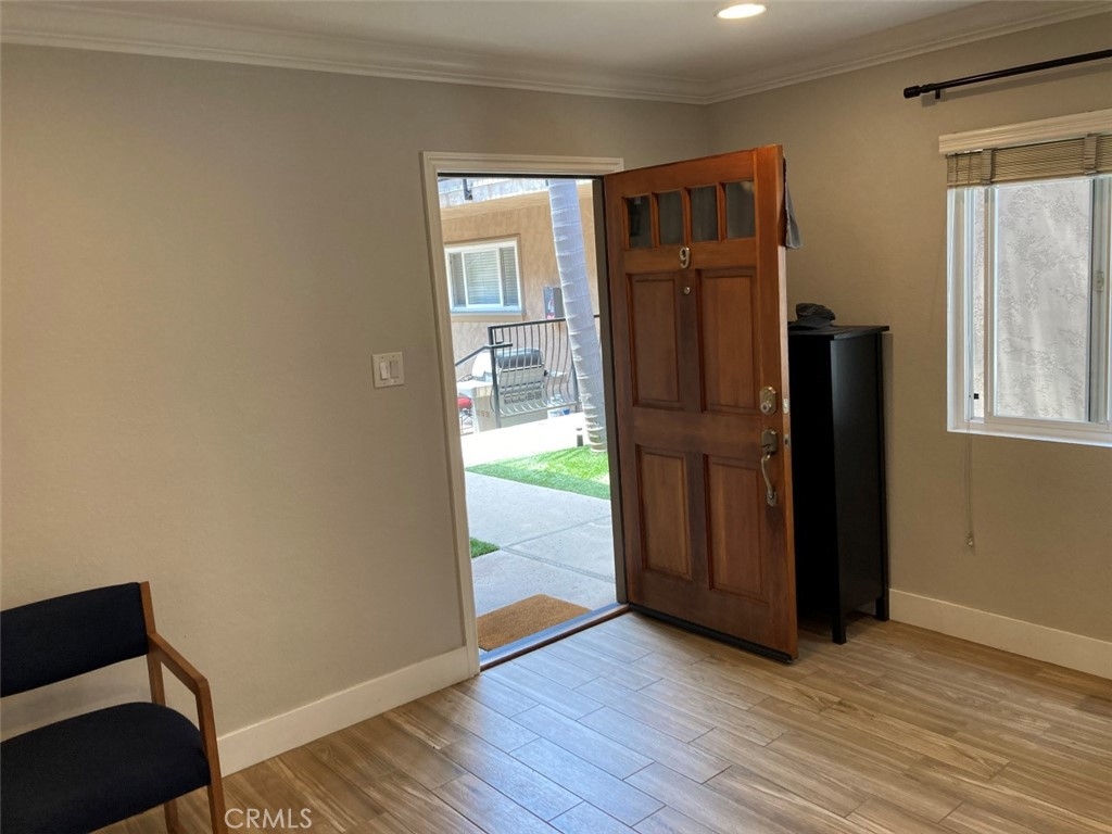 Meticulously maintained and tastefully upgraded 1-bed, 1-bath ground level end unit in Pacific Beach. Granite kitchen countertops, custom cabinetry, new dishwasher. Crown molding, dual pane windows, porcelain tile flooring and pine wood baseboard throughout. Hardwood front door with keyless entry. Sound reducing insulation in bedroom. Gated complex with secure access. Three blocks to Trader Joe's and just a short distance to Kate Sessions Park, shopping, dining, entertainment and the beach. Low HOA that includes water, trash. One assigned parking space.