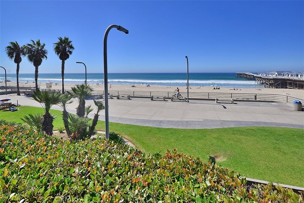 Ocean view in Pacific Beach! Steps to the beach and Crystal Pier. Beachfront living in updated condo. Perfect location for beach lovers. Enjoy the stunning view of the Pacific Ocean from the living room. Checkout the kitchen and modern spa like bathroom. Comes fully furnished - king sized bed in master bedroom! Building has top floor penthouse room with panoramic ocean views available to building owners! Complex located right on the boardwalk lined with shops, restaurants and bars. This building is only one of the few that allow for short term rental. Well maintained community complex with heated pool, jacuzzi, gas BBQ grill, lounge chair and picnic tables. Comes with gated assigned underground parking. Laundry room available onsite. HOA fee covers water, sewer, trash and common area maintenance.