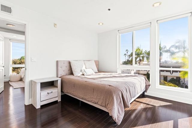 Just two blocks from the beach, this contemporary Pacific Beach condo puts beach living within easy reach! Located in a quiet, well-maintained complex, this two-story corner unit offers an open main level with tall windows, abundant natural light, and a private balcony. Both bedrooms are upstairs, each with its own ensuite bath, perfect for guests or roommates. No one above or below adds to the sense of privacy! Additional highlights include in-unit laundry and newer HVAC. Secure underground parking for two vehicles with EV wiring, plus private storage, bike storage, and secure elevator access. Steps to shopping, dining, and the PB Farmers Market—an ideal spot for the coastal life!