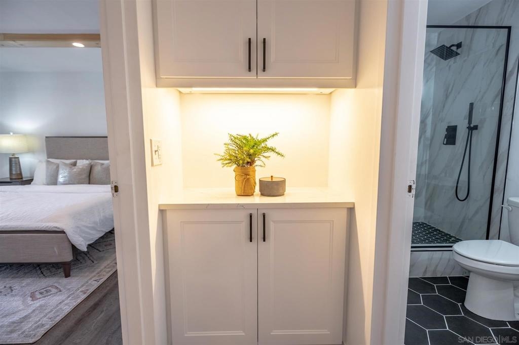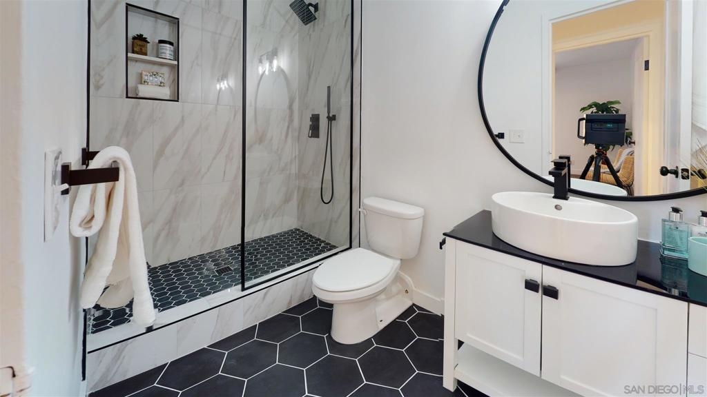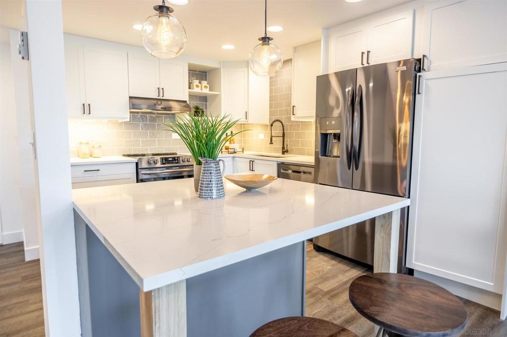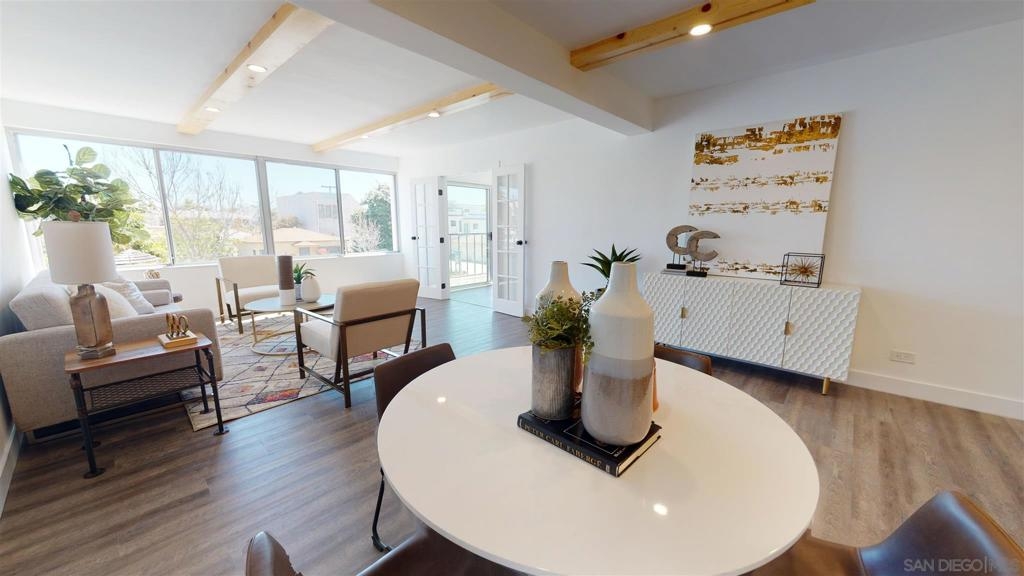 Brand New 1bedroom condo (w/ bonus room) in the Pacific Tower community of North Pacific Beach. Top to bottom remodel just completed. Kitchen has two-tone shaker cabinets w/ custom faces, hardware, & quartz counters, large island w/ overhang for stools, black stainless appliances, filtered water + ice maker counter depth refrigerator. Bath has custom tile throughout w/ glass enclosed shower. Main room and bedroom have wood recessed lighting beams. Flooring is luxury vinyl plank. Extra bonus room off living room and bedroom through custom french doors leading out to balcony. Great for work from home office, Peloton fitness room, kids room, temp guest room, etc. See supplement for more. Big perk of this condo is the 2nd floor location. You are not reliant on elevators. Just one set of stairs from the street, very easy! And, condo is on the same level as the community pool, gym, & community room. /// Pacific Tower Community has 12 floors w/ 118 condos, and is 3 blocks down Wilbur Ave to the ocean. HOA monthly fee includes: water, hot water, basic cable, trash, sewer, common areamaintenance and insurance, as well as the ammenities which include: pool, laundry, sauna, fitness center, community room and kitchen. Community rules: 1) one pet up to 35 lbs. 2) no short term rentals or Airbnb. 90 day minimum rental period /// QUESTION ANSWERS: (1)- Yes Pacific Tower is VA loan approved. Other Fees: 0 Sewer: Sewer Connected Topography: LL