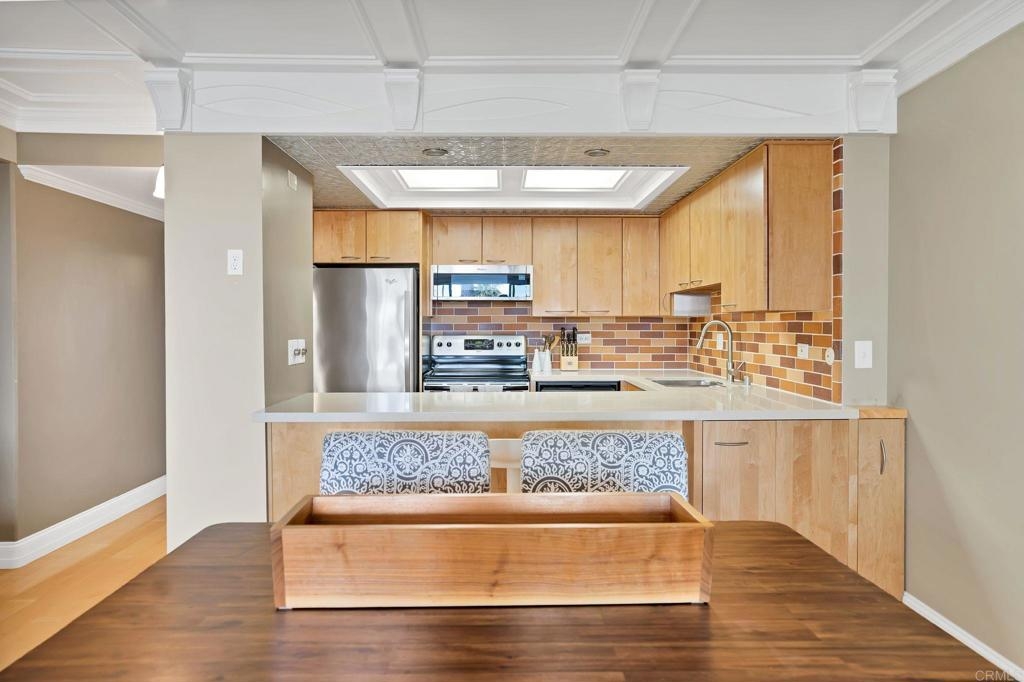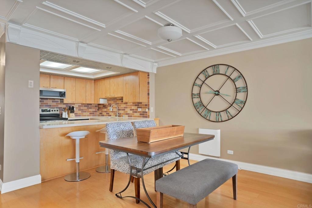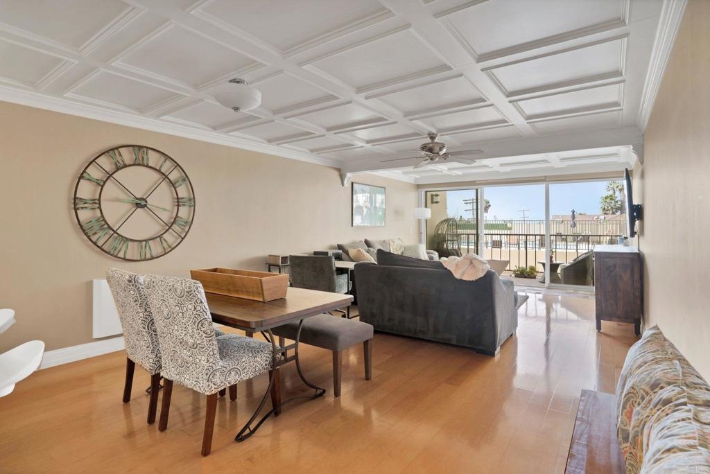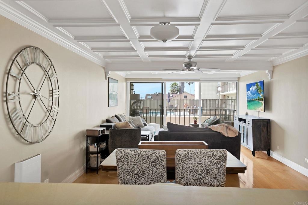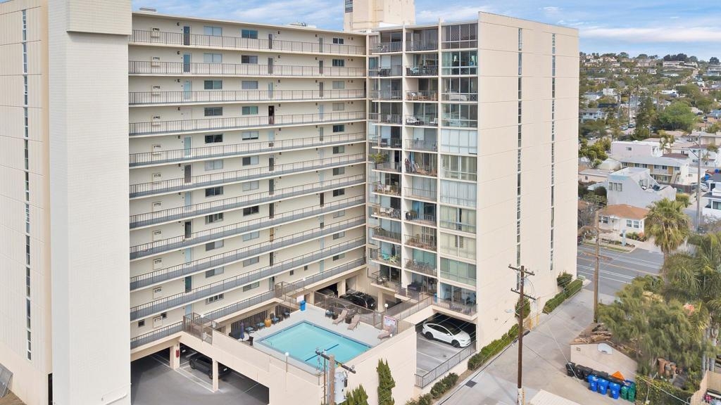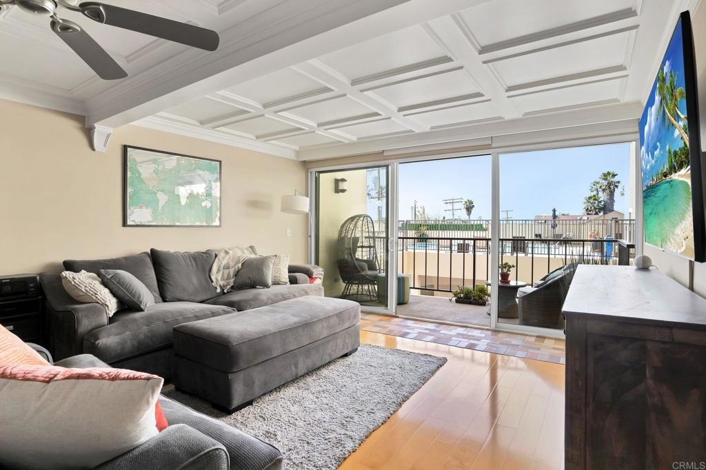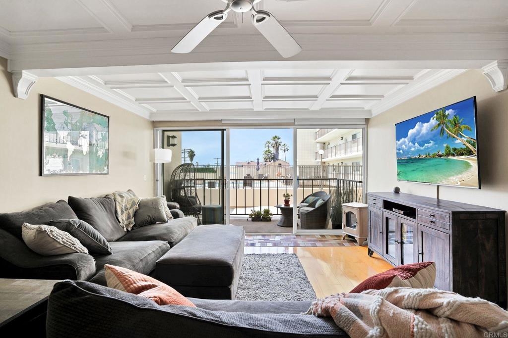 Is it even worth living in San Diego if you don't live at the beach? Highly sought after west facing 1 bedroom condo at Pacific Towers in beautiful North Pacific Beach. VA and FHA approved! Incredible location just 3 blocks from the ocean and in the quieter part of PB, but still walking distance to restaurants, bars and nightlife. Upgrades you don't see every day. Incredible coffered ceilings, engineered maple floors, cedar walk-in closet and detailed custom built ins throughout that must be seen to appreciate! West facing unit with no one below and no neighbors on the sides. Large balcony with sliding door lets in a ton of light. Pacific Towers features a pool, rec room/gym, easy community laundry on each floor, storage closet, and one underground garage parking spot.