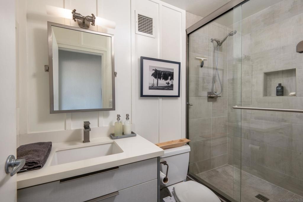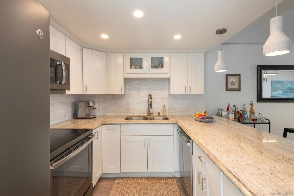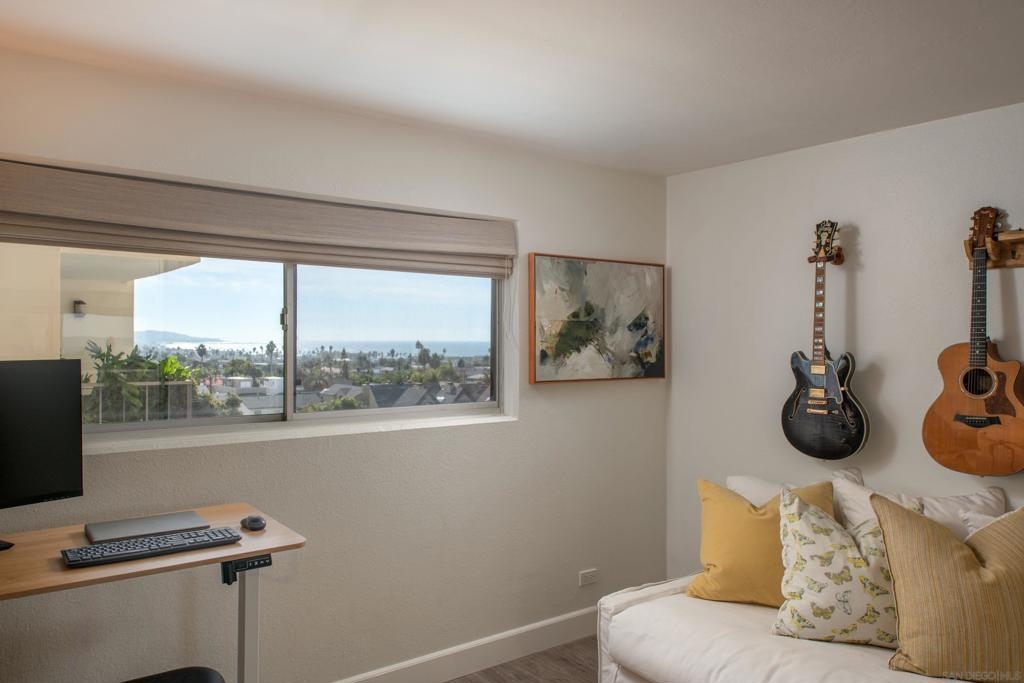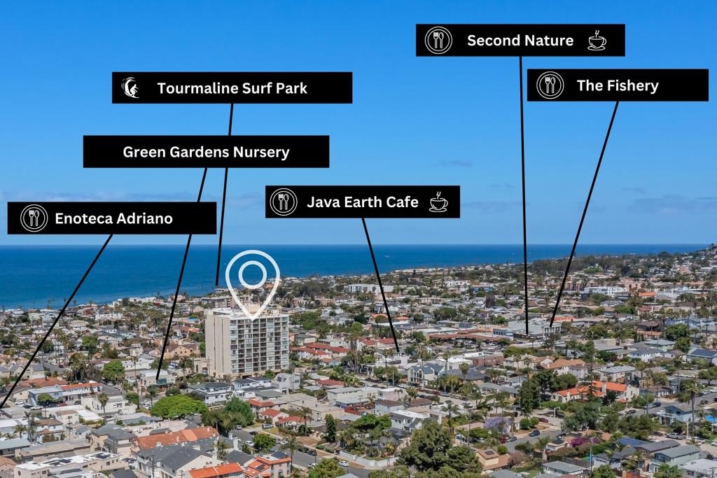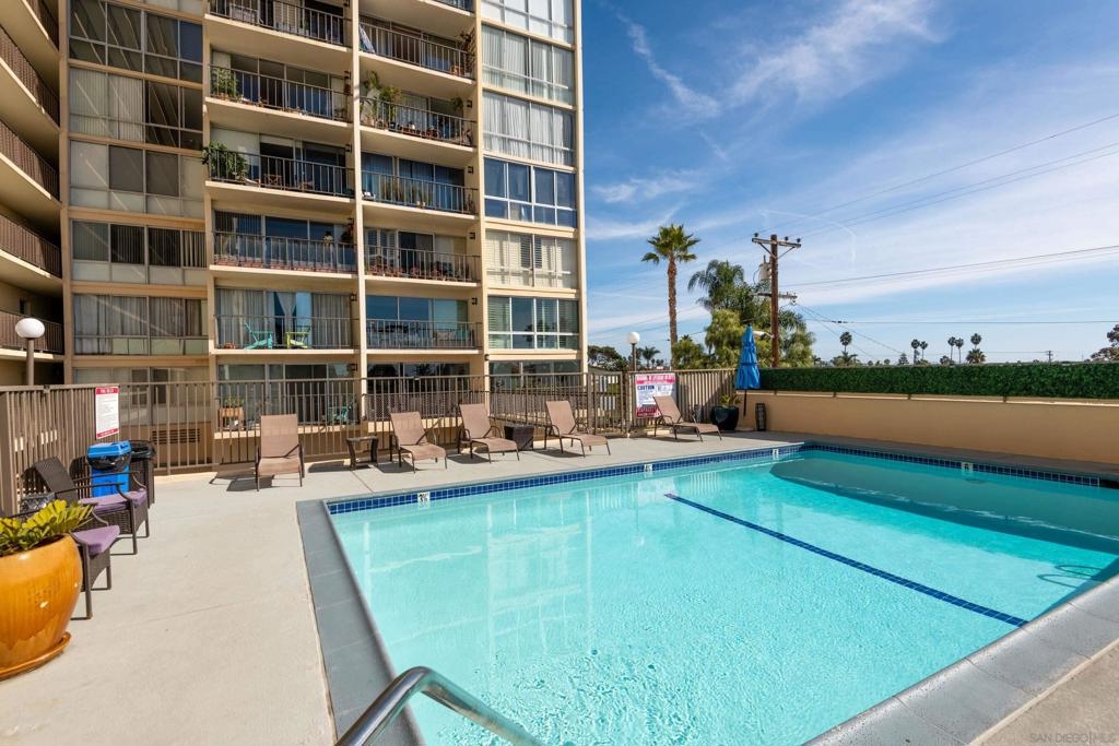 Embrace elevated living and coastal charm from this beautifully remodeled 2-bedroom, 2-bath condominium situated in the vibrant community of Northwest Pacific Beach. Designed with modern upgrades and a beachy charm, the open-concept layout is bathed in natural light from floor-to-ceiling windows in the living room and primary bedroom—creating an ideal setting for relaxation and entertaining. Newly remodeled highlights include a beautiful primary bathroom with a walk-in tiled shower, custom blinds in the living room and primary bedroom, and a stunning handmade Moroccan tile backsplash in the kitchen. Enjoy sweeping southwest views of white water ocean vistas, Mission Bay, Point Loma, and evening lights from the entry and second bedroom. The spacious living room balcony and primary suite provides ocean and expansive La Jolla hillside views creating a serene and luxurious retreat. Located just blocks from renowned beaches, this home places you steps away from vibrant shops, cafes, dining, and nightlife. Pacific Tower offers residents a gated lobby, secure parking garage, elevators, laundry, pool, sauna, fitness center, and recreation room for small gatherings. This is San Diego living at its finest—don’t miss the opportunity to call it yours!