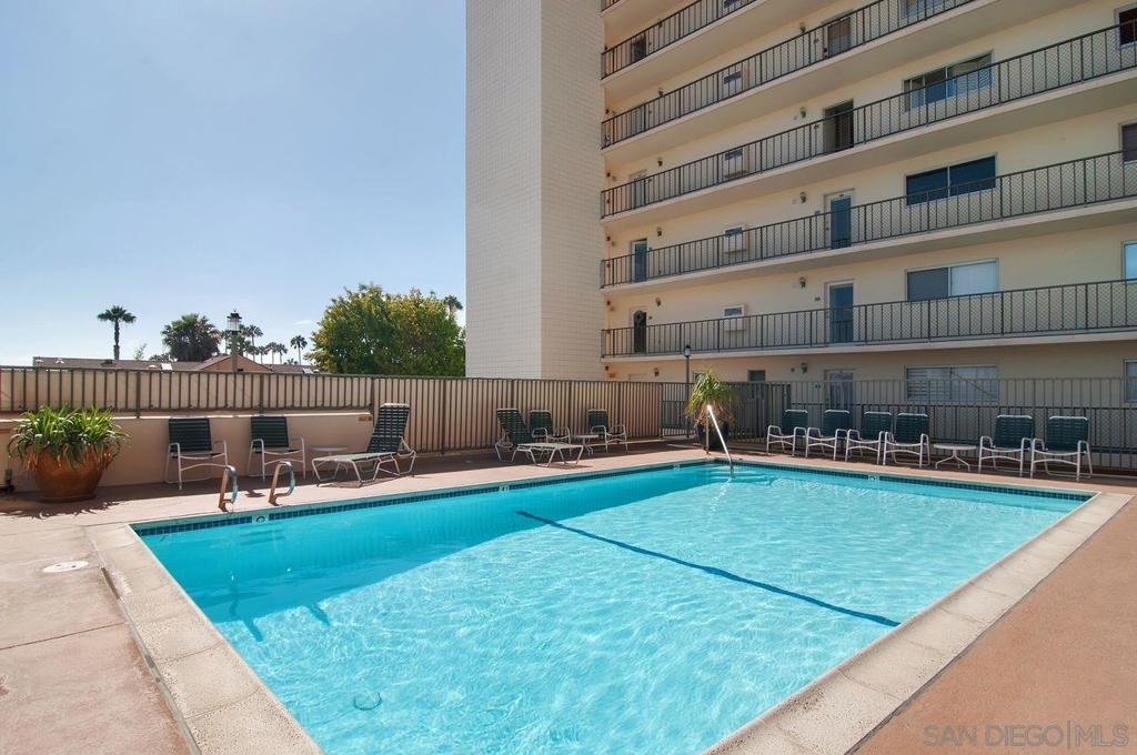 Remodeled bright and open condo on the 8th floor with floor to ceiling windows overlooking Southeast views of city lights, Downtown Skyline, and a glimpse of Mission Bay! This home features hardwood floors, remodeled kitchen & baths w/ granite counters, new roller shades in LR, and electronic shades in MB. Enjoy living in a quiet neighborhood 3 blocks to the beach and just a short stroll to restaurants, shops, & entertainment! The complex boasts a pool, gym, sauna, gated parking & private storage. Pacific Towers is one of only two high rise buildings in Pacific Beach. The amenities include basic internet/cable, pool, small gym w/ newer exercise equipment, sauna, bicycle storage and an onsite manager. Other Fees: 0 Sewer: Sewer Connected Topography: LL