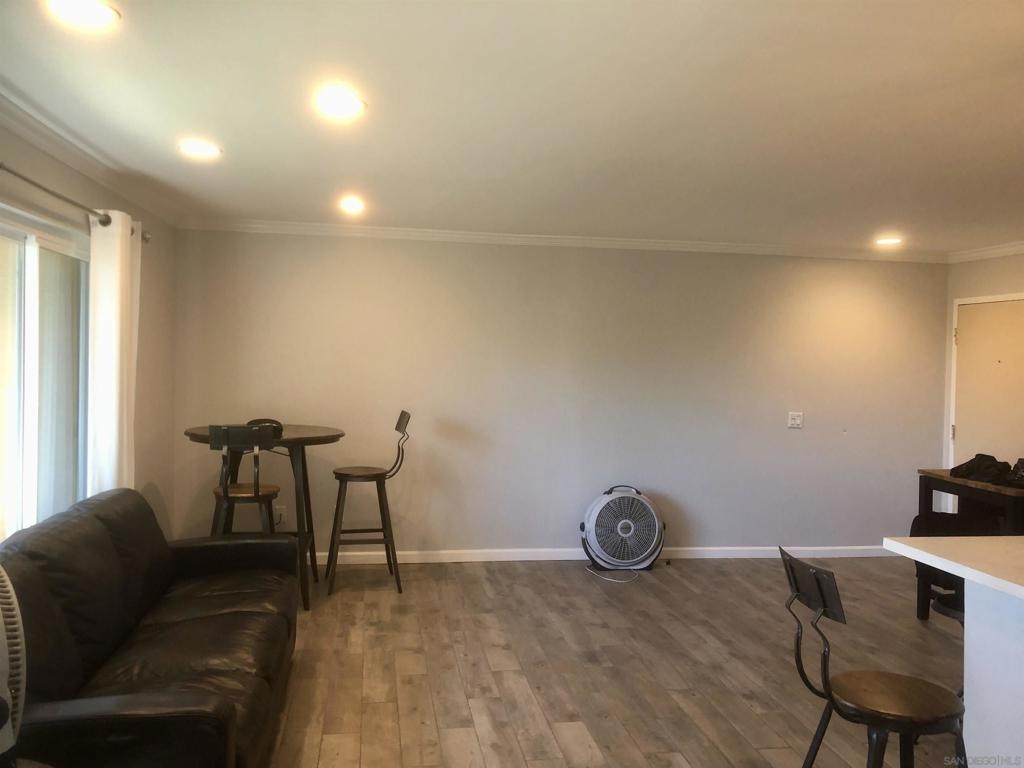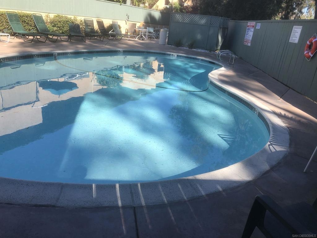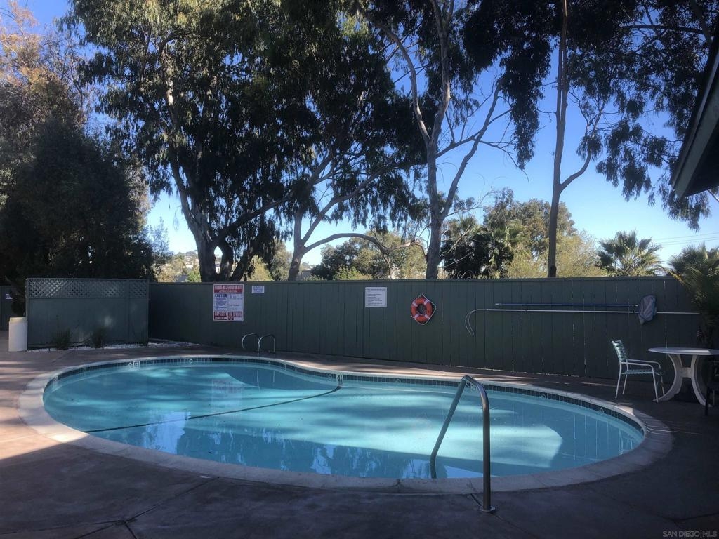 Here's your chance to own a rare gorgeous top floor private end-unit condo, located on a quiet cul-de-sac. The private patio overlooks lush greenery and mature eucalyptus trees. The entire interior of the unit has been remodeled from floor to ceiling. Features: high-end flooring throughout, new dual-paned windows, recessed lighting, pendant lighting over kitchen island, gorgeous solid wood shaker kitchen cabinetry, high-end appliances, bedroom ceiling fan, remodeled bathroom and custom-built closet shelving in both closets. Low HOA fees include a heated community pool. Close proximity to Garnet Ave, Shops, Restaurant's, Dog Park and the I-5 North Freeway. 10 Minutes from the Word Famous Crystal Pier. This condo is the largest of the one bedrooms in Pacific Woodlands with only one other matching floor plan in the complex. This building is the only one in the complex with secured underground parking and several large areas of guest parking. Equipment: Garage Door Opener,Pool/Spa/Equipment Sewer: Sewer Connected Topography: LL