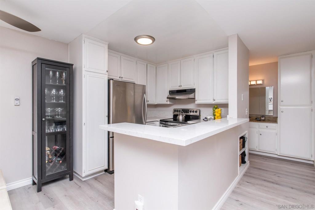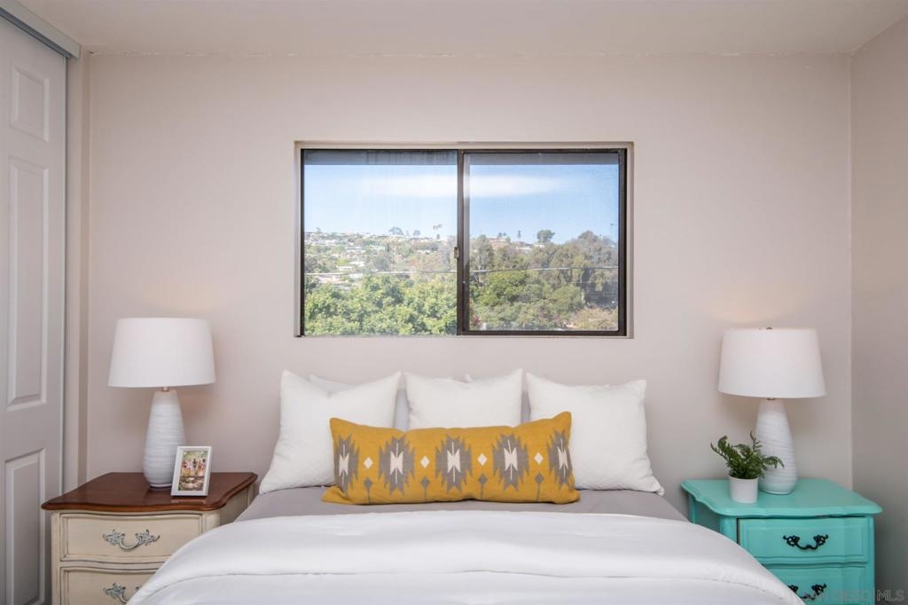 Newly Enhanced Price! Remodeled, NW facing, Top Floor unit w/ Mt Soledad views. FHA/VA condo, easily accessible from the 5 freeway and less than 1 mile to Pacific Beach. Enjoy a sunset from your large outdoor patio or the bike trails that lead to MB, OB, and PB. Greenbelt/Exercise area beside the poo isl also perfect for owners w/pets. Guest and street parking are abundant in this cul du sac. SeaWorld and other top quality attractions nearby. Enjoy the beach vibe or Kate Sessions Park without the noise! Washer/Dryer can be added inside this unit per HOA standard guidelines, previously allowed with many other units in the complex. Due to infant and pets on property, owner request showings only in the evenings and anytime on Sat and Sun. Owner has updated this property recently to include quartz countertops. Vinyl/Plank Hardwood Flooring, smooth ceilings and fully tiled bathroom. Great starter condo for any family in a quiet, centrally located complex. Ample outdoor patio space and grill space. Other Fees: 0 Sewer: Sewer Connected Topography: , Frontage: Canyon