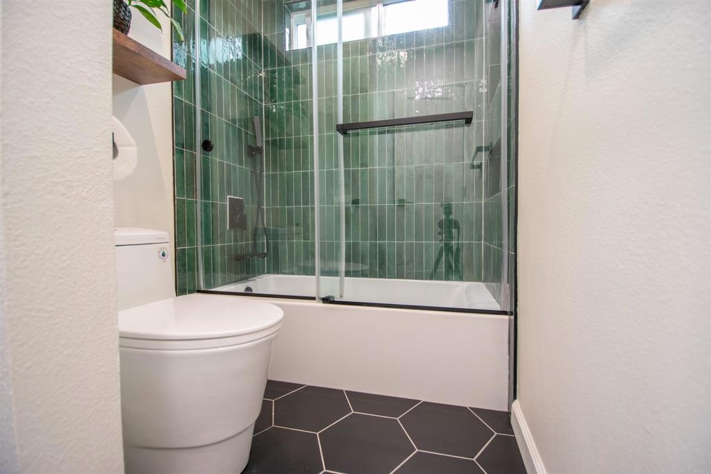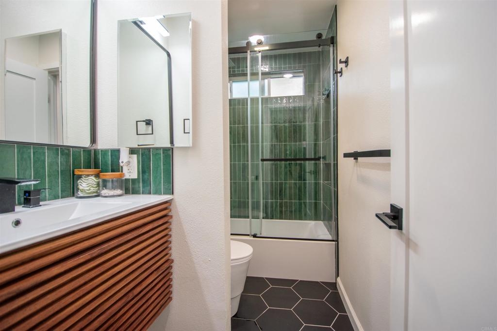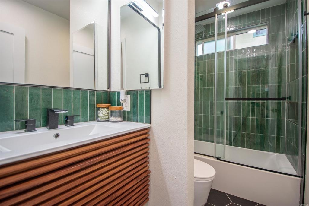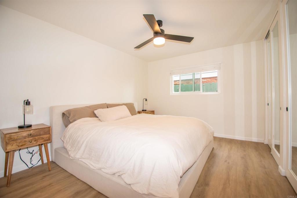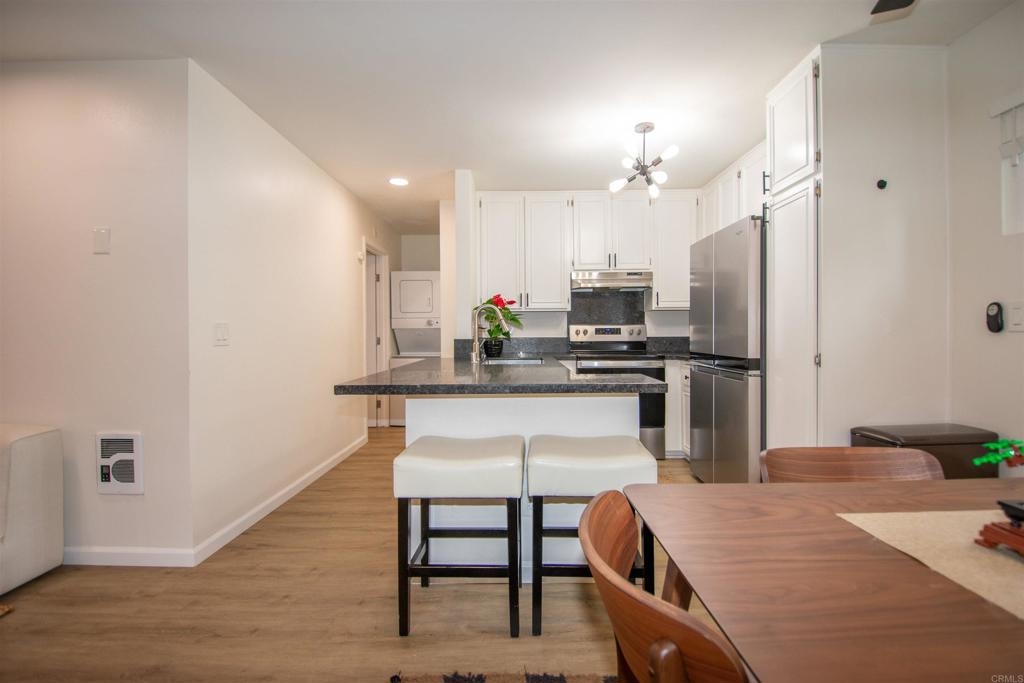 Location, Location, Location! Modern corner unit condo nestled in the heart of Pacific Beach, a short distance away from the vibrant energy of the area. As you step inside, you're greeted by an open-concept layout, with a spacious living area perfect for entertaining. New water proof Luxury Vinyl flooring (LVP) throughout brightens the whole living space. The remodeled kitchen with sleek countertops, farmhouse sink, stainless steel appliances, and new cabinet hardware invites you to whip up delicious meals or craft cocktails while friends join you at the bar or kitchen table. The spacious bedroom offers large closets with high end mirrored doors and a brand new linen cabinet with new doors and hardware to keep everything organized. The newly remodeled bathroom has design elements which include Italian tile, modern vanity and fixtures, skirted toilet and modern glass shower door. A stackable washer/dryer has recently been installed inside the condo, but community laundry is also available. New shaker doors and new vinyl windows throughout plus a large sliding door leads to a spacious patio that offers cool ocean breezes and sunshine both outside and in. The fully fenced private community Pool is a short walk. The Beach, the Bay, Crystal Pier, Kate Sessions Park, Garnet Ave, trendy restaurants, hip cafes, lively bars, and boutique shops are moments away to soak in the coastal atmosphere of Pacific Beach. Yet essential amenities such as grocery stores, pharmacies, banks and public transportation, make daily errands also convenient. Walking distance to coffee shop, new trolly/train transit center, bike path accessible, La Jolla is just over Mt. Soledad and easy access to freeway which leads to liberty station, downtown, Balboa Park, the famous San Diego Zoo, Sea World. Parking and guest parking right in front. Turnkey condo with low HOA won't last long!