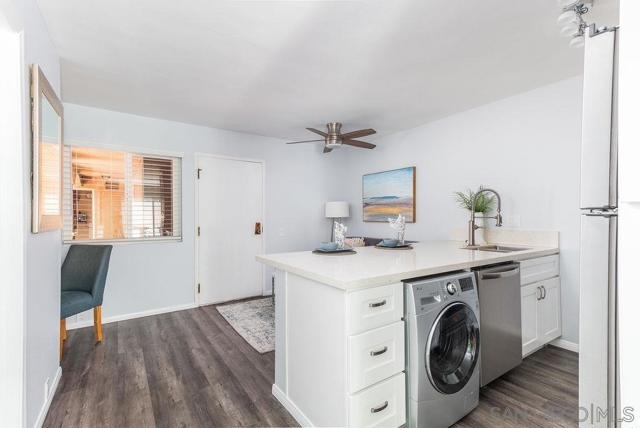 SoCal living at its best! This pristine studio condo is within walking distance of Sail Bay, a short bike ride away from the Pacific Ocean, SeaWorld, & many other local attractions. Located in the Sail Bay Community, a small, private gated complex, you will be struck by the serenity & lush tropical landscaping. This recently remodeled studio condo is open & bright, with access to an adjacent private patio. The unit has a space-saving Murphy bed, spacious built-in closets, & its own combo washer/dryer. A must see! Sail Bay offers low HOA dues, a designated parking space, on-site laundry, & an easy access, designated walk-in storage unit in the basement - perfect for surfboards, bikes or seasonal items. Sewer: Sewer Connected Topography: LL