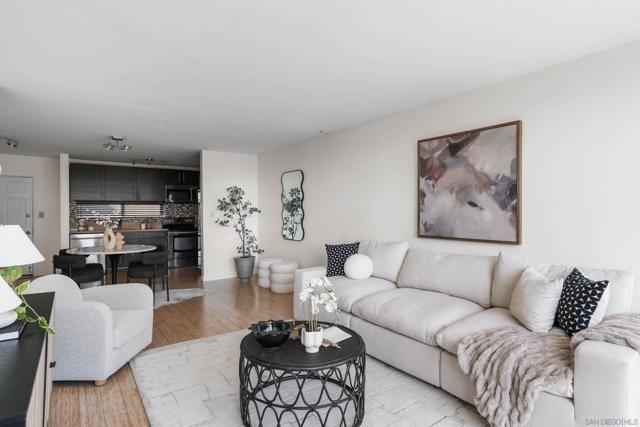 Bay views from your living room, dining, and kitchen of this top-floor residence at The Regency in Pacific Beach. Perfectly positioned just blocks from the water, this home captures the essence of San Diego’s coastal lifestyle, relaxed, and connected to everything that makes this neighborhood so desirable. Inside, the open floor plan is airy and light-filled, living room slider and expansive windows that frame the bay and create an immediate sense of space. The main living areas flow seamlessly together, making it ideal for both everyday living and entertaining. The kitchen is positioned to take full advantage of the view, allowing you to enjoy the beauty of the bay from the heart of the home. The bedroom offers a quiet retreat surrounded by lush greenery, creating a tranquil setting to start and end each day. Two spacious bedroom closets provide ample storage, and the full bathroom is designed with dual access, an ensuite entry from the primary bedroom, and a second entry to accommodate guests comfortably. Practical features add to the appeal: an assigned parking space, in-building laundry, and the privacy of being on the top floor with no neighbors above. Just outside your front door, the pool view sets the tone for a resort-style atmosphere, complemented by a well-maintained community. Amenities include the pool, BBQ area, and dedicated bike and surfboard storage. The Regency is a fully gated community known for its lush landscaping and coastal charm. Its location offers the best of both worlds: close proximity to the bay, waterfront paths, the ocean, and some of Pacific Beach’s best dining and cafes, while remaining tucked slightly away from the busiest corridors. The result is easy access and a peaceful, residential feel. Pacific Beach, or “PB,” as locals affectionately call it, is one of San Diego’s most sought-after coastal neighborhoods, offering the perfect blend of classic California charm and vibrant local energy. Just minutes from both the bay and the ocean, residents enjoy an active outdoor lifestyle with morning walks on the boardwalk, bike rides along the coast, paddleboarding on the bay, or sunset runs by the water. The neighborhood is centrally located with easy access to major freeways and nearby areas like La Jolla, Mission Bay, and downtown San Diego, making it as convenient as it is beautiful. PB is known for its lively dining and social scene, featuring trendy coffee shops, casual cafés, and popular waterfront restaurants, all balanced by a welcoming neighborhood feel. Depending on where you are, you can experience the energy near Garnet Avenue or the quieter, more residential streets just a few blocks away, where tree-lined roads, walkable paths, and easier parking create a calm, community-oriented vibe. Locals love the easy access to beaches, parks, and bike trails, along with farmers markets, fitness studios, surf shops, and everything needed for a true coastal lifestyle. This residence offers more than just a place to live, it’s a lifestyle defined by light, views, and the unmatched energy of Pacific Beach. Open Houses 10/11 & 10/12 12-2pm.