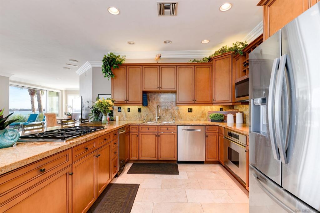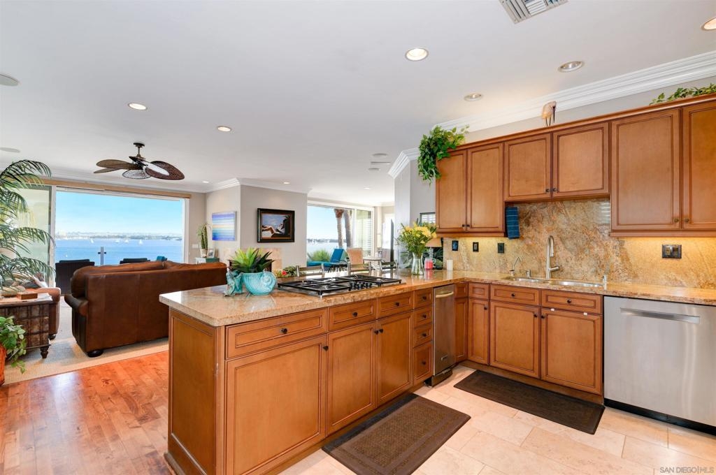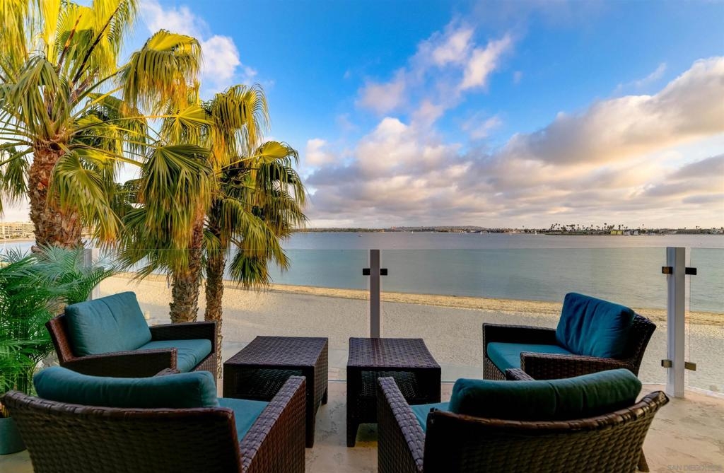 Live the life of luxury in this modern penthouse with panoramic views of Sail Bay. The stackable sliding doors enable indoor/outdoor living at its finest. Let the sea breeze in or step out onto your large private patio and take in the views. Updated kitchen and baths, hardwood floors, and open floorplan provide all the comforts of leisure and luxury. Elevator from the garage and in unit laundry make this a perfect live in or second home. Walk down to the sand and enjoy all the bay has to offer. Lounge in the sun or ride your bike to your favorite restaurants, shops, and beach. Vacation rental ok with 1 wk min.