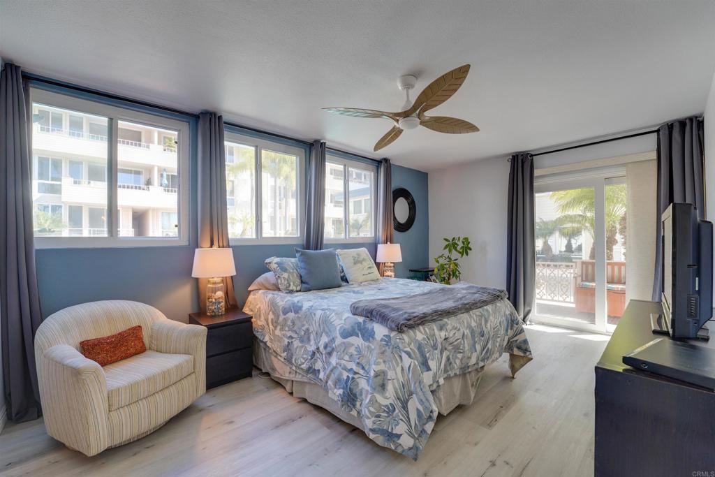 Welcome to Riviera Shores on Sail Bay, where waterfront tranquility meets the best of Pacific Beach living. This rare ground-floor 3BR/2BA condo is just steps from the sand and offers the ease of single-level living with no interior stairs. Bright corner windows frame beautiful bay views from the living and dining areas, while the spacious layout includes an updated kitchen, new LVP flooring, dual-pane windows and sliders, a generous primary suite, and two tastefully remodeled bathrooms with walk-in showers. The oversized covered patio creates seamless indoor-outdoor living and a front-row seat to the Sail Bay lifestyle. Residents enjoy a sparkling community pool, covered parking, in-unit laundry, and direct access to the scenic boardwalk stretching around the bay toward Crown Point and beyond. A rare chance to own a spacious bayfront home in one of Pacific Beach’s most desirable settings.