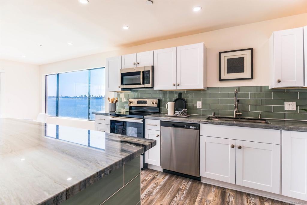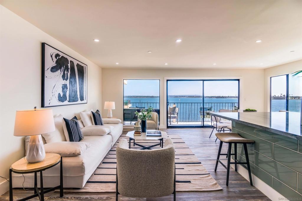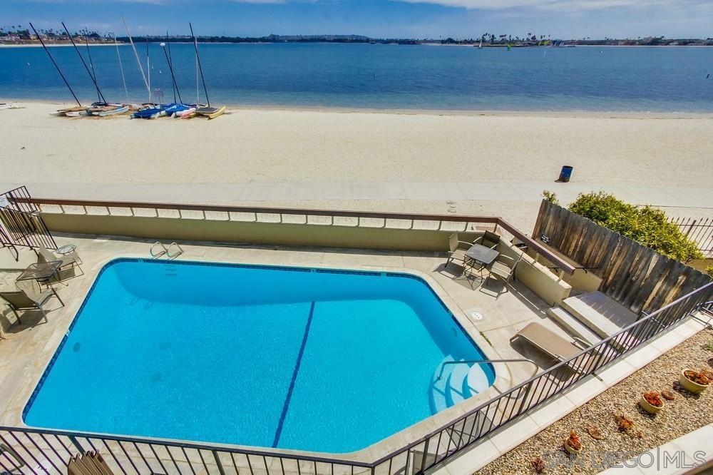 Stunning Panoramic Bay Views from the living room, dining room and kitchen. Watch the sail boats drift by as the waves crash on the shore of Sail Bay. One of only 16 bay front units, this open floor plan 2 bedroom, 2 bath single level condo on Sail Bay was remodeled down to the studs including new plumbing & electrical, new bathrooms, new kitchen and flooring throughout. The oversized deck extends your living space right out the the waters edge. amenities include a gated community, Elevator, heated pool, step to the sand. Centrally located in PB, just 5 blocks to the beach and 3 blocks to shopping, grocery and dining. Great opportunity! Sewer: Sewer Connected Topography: LL