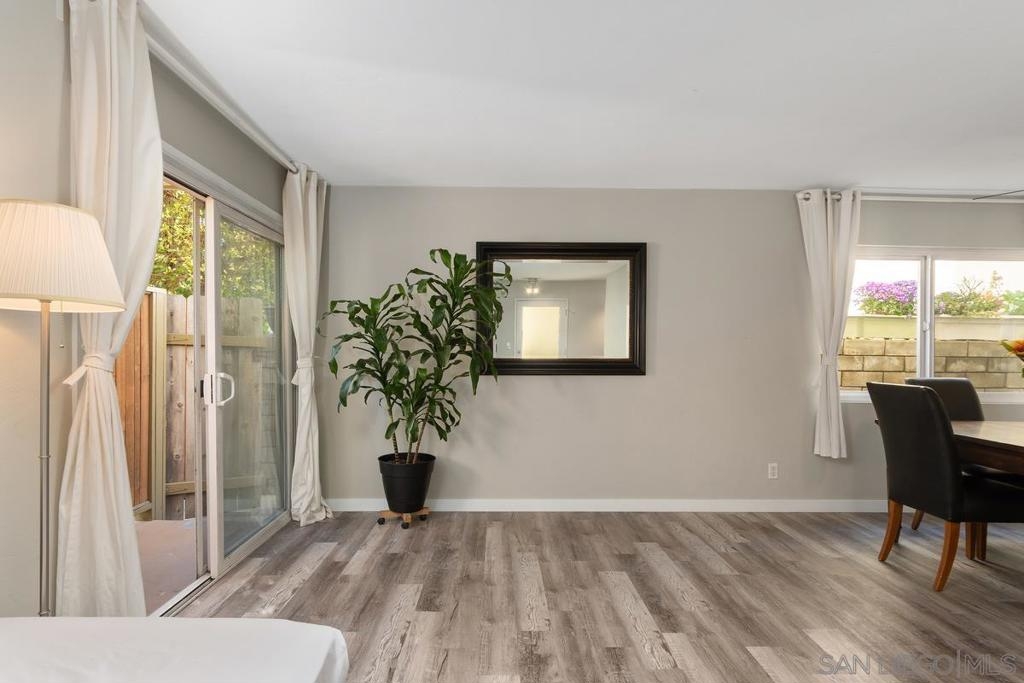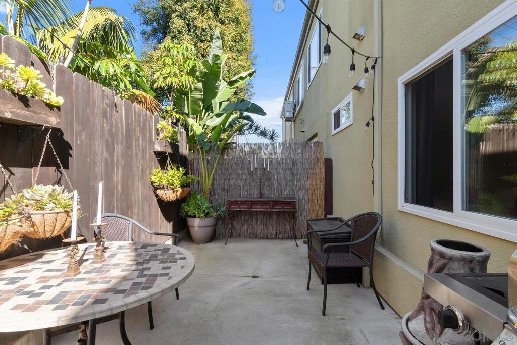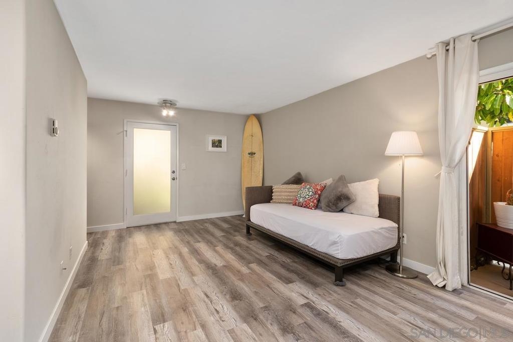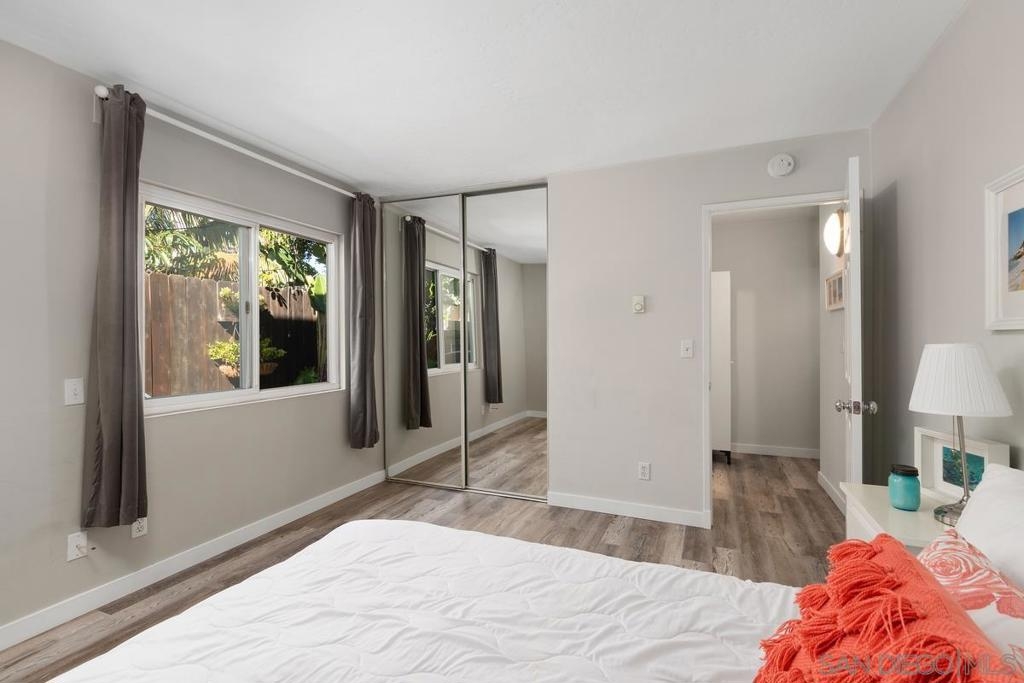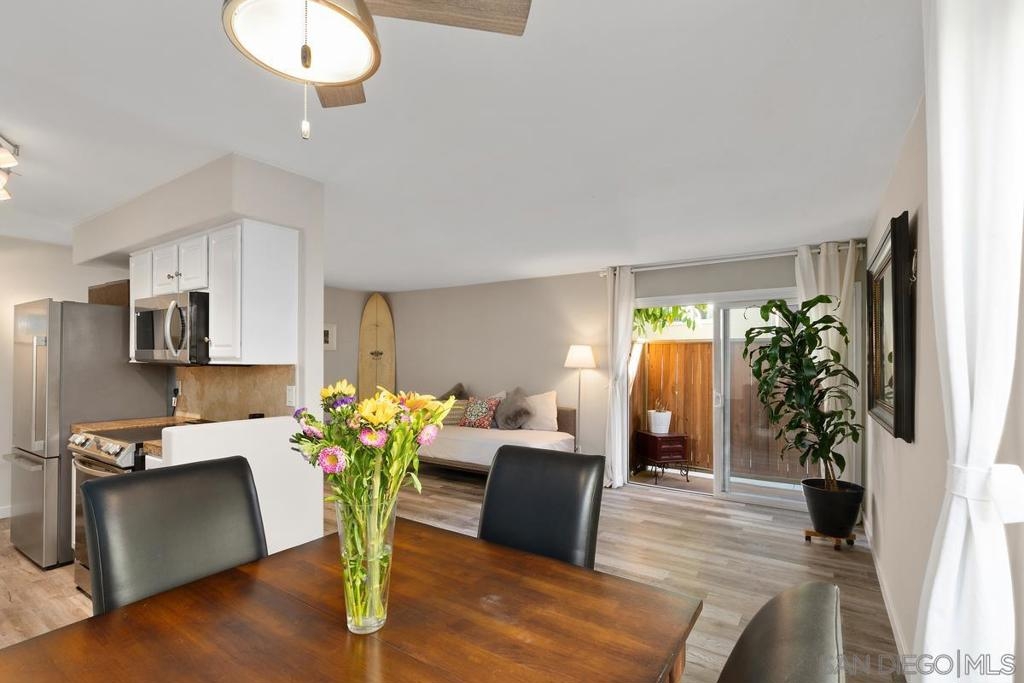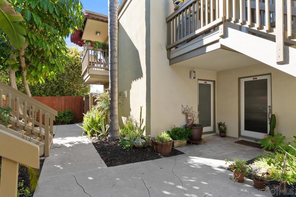 Live at the Beach - just in time for summer! Tucked away on a quiet street in a small, 12 unit complex in Pacific Beach, this light & airy, single level, end unit is move-in ready. Recently painted, with laminate floors throughout, newer stainless appliances, & stacked washer/dryer. Enjoy outdoor entertaining on your private & very spacious patio. Energy efficient dual paned vinyl windows. Short distance to fun restaurants, pubs & cafes, boutiques & grocery stores, night life, & beautiful beaches. The San Diego Lifestyle awaits you here! Easy access to freeway. Low HOA fees. Enter unit from side gate & there are no stairs to unit - true single level living.