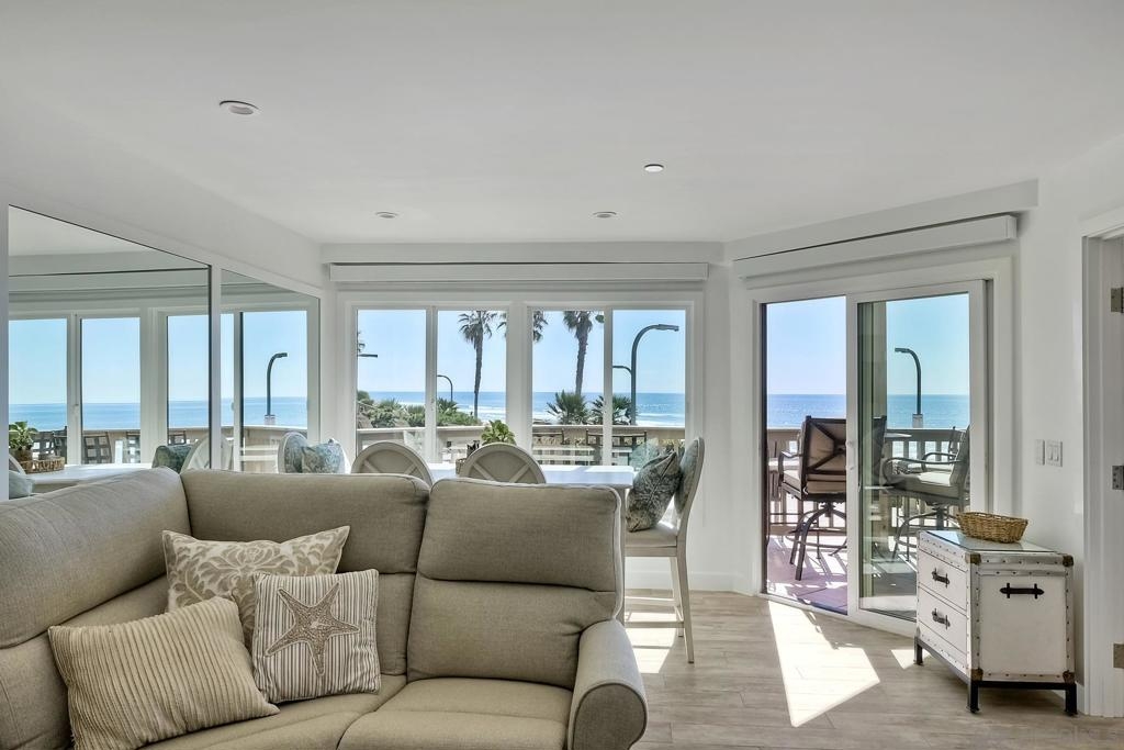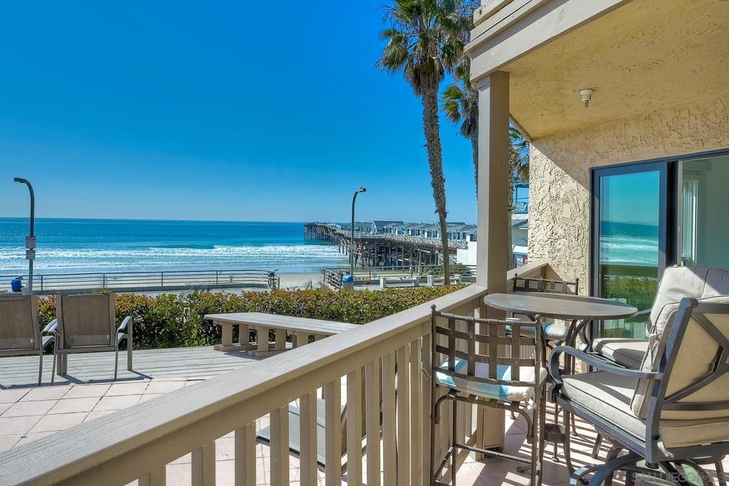Stunning Ocean Views from the living room, dining room, master bedroom, exclusive use patio and large community sunset watching deck! Steps from the sand, Boardwalk and famous Crystal Pier! When you enter this beautifully remodeled 2 bedroom, 2 bath condo, your eyes are drawn to the quality finishes, textures and abundance of light. New plumbing, electrical, walls, windows, floors, paint, ceilings, lighting, fans, bathrooms and kitchen with entertaining bar, custom cabinets and stainless steel appliances.This amazing unit also includes indoor remote curtains, security surveillance system, ring doorbell, owner storage, elevators and wheelchair accessibility. Secure, gated underground parking. Perfect for beach fun with family and friends or as an income producing rental. Other Fees: 0 Sewer: Sewer Connected Topography: LL Frontage: Ocean/Sand