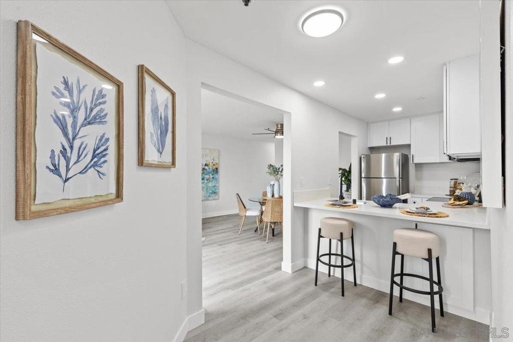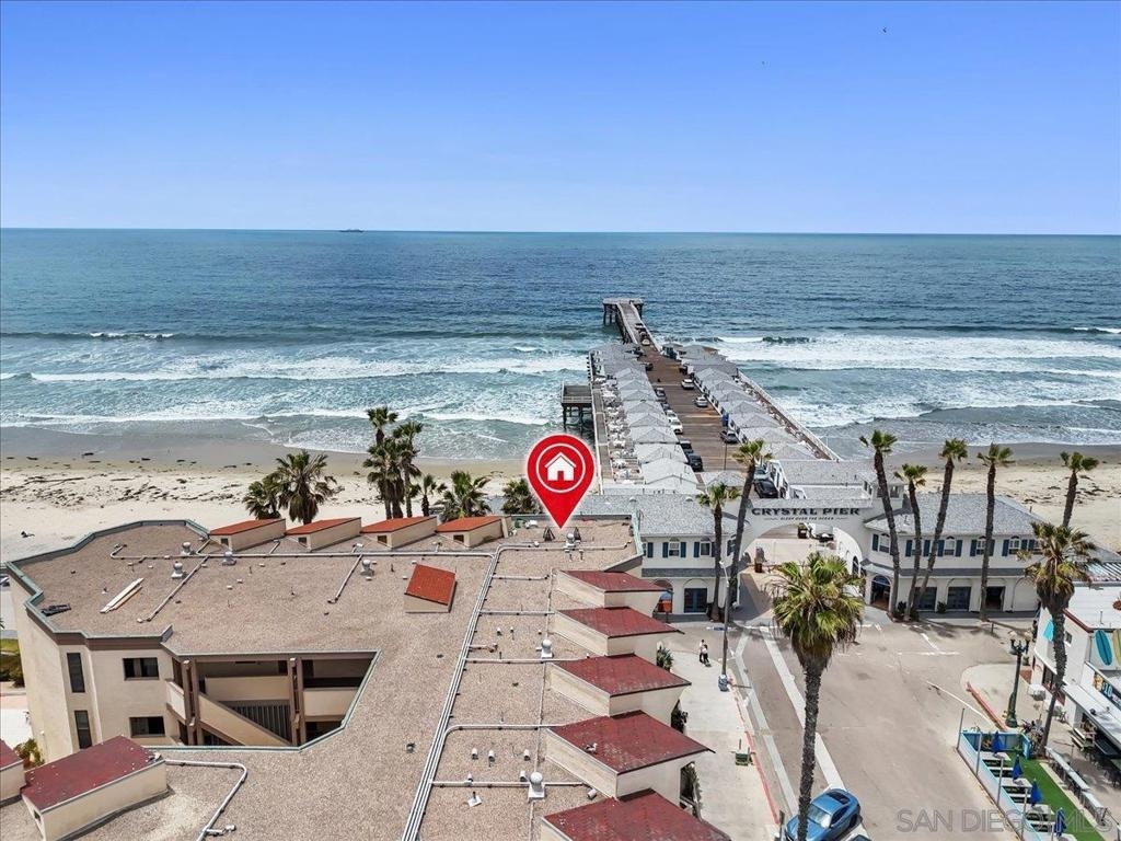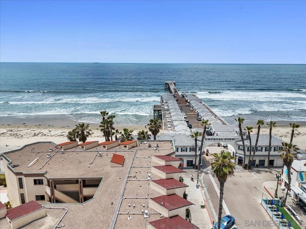 Location, location, location! Turnkey ocean-view condo in a prime Pacific Beach location just steps to the sand, boardwalk, shops, and top restaurants. This 1-bedroom, 1-bath unit lives large with an open layout and space in the living room to add a Murphy bed. Enjoy ocean and Crystal Pier views from both the living room and bedroom, plus a private balcony and an expansive front patio perfect for indoor-outdoor living. Fully updated and eligible for minimum 7-day vacation rentals—ideal for short-term income or a personal beach getaway. Includes secure parking, private storage locker, and access to a community spa and ocean-view sun deck.