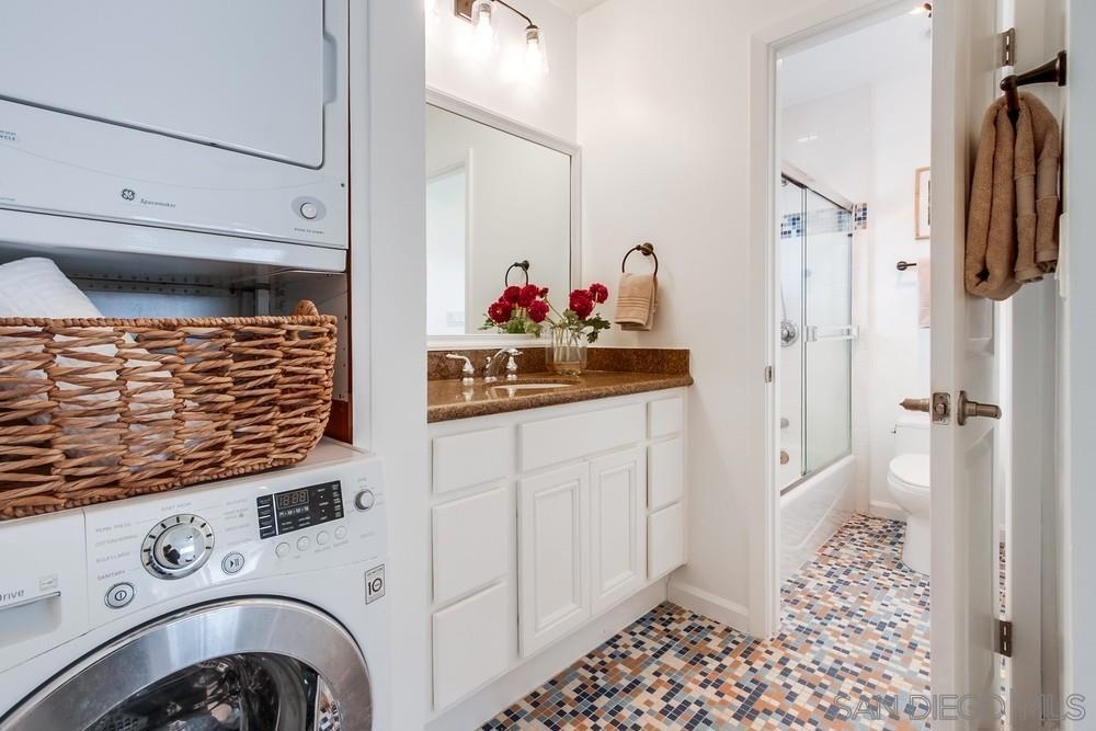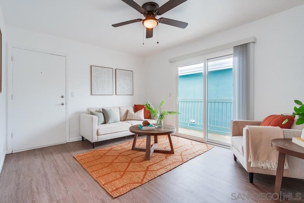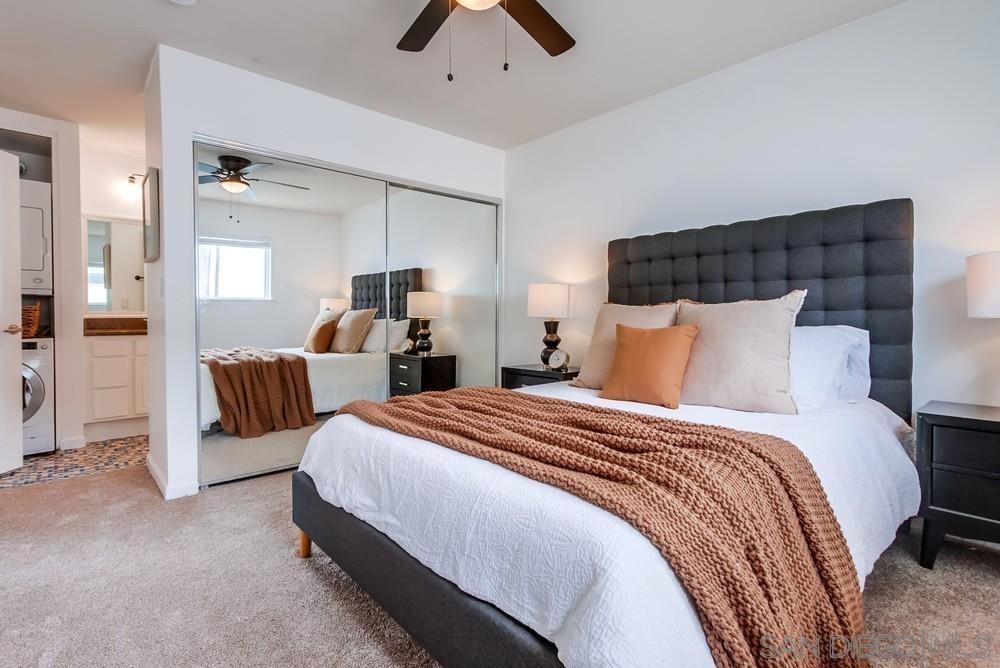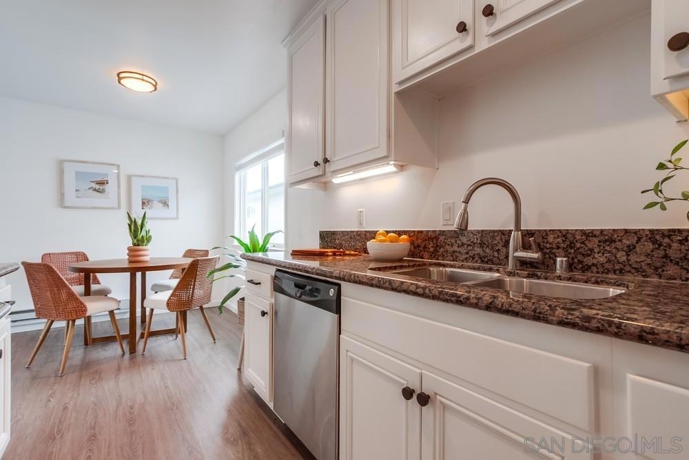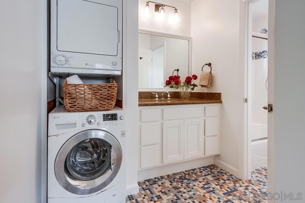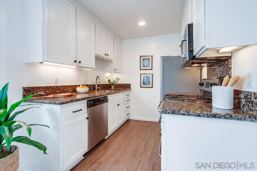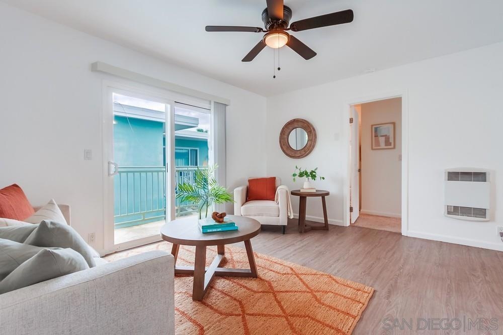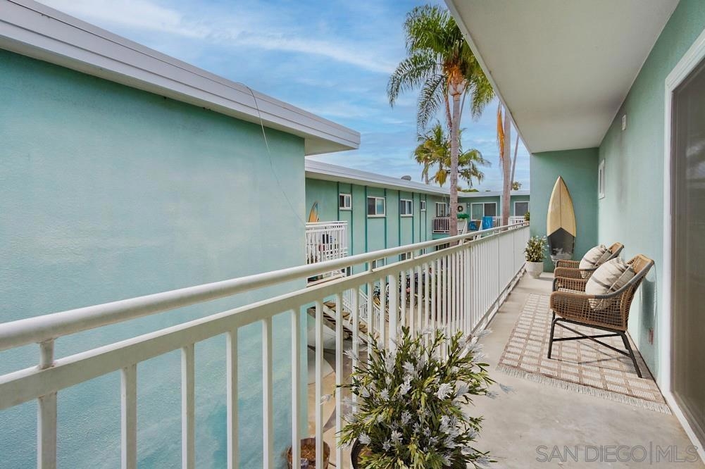 Beautiful 1 bedroom, 1 bathroom upper level property in the heart of Pacific Beach! This single level condo has no neighbors above and features a private washer/dryer in unit! Great layout with living room that flows to a long, covered balcony space, eat in kitchen area for dining and a light/bright feel. Upgraded flooring, stainless steel appliances and granite countertops in kitchen, brand new carpet in bedroom, ceiling fans, new slider/window glass & more. Gated complex, 1 assigned parking spot- off street, gated and covered carport. Walk to everything…beach, bay, shopping & entertainment…plus easy freeway access in and out of 92109!