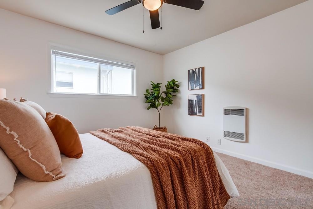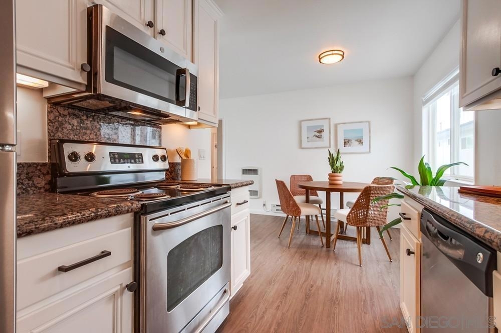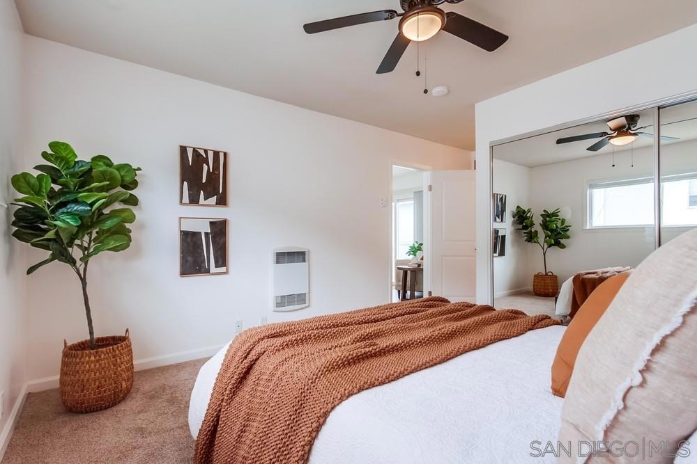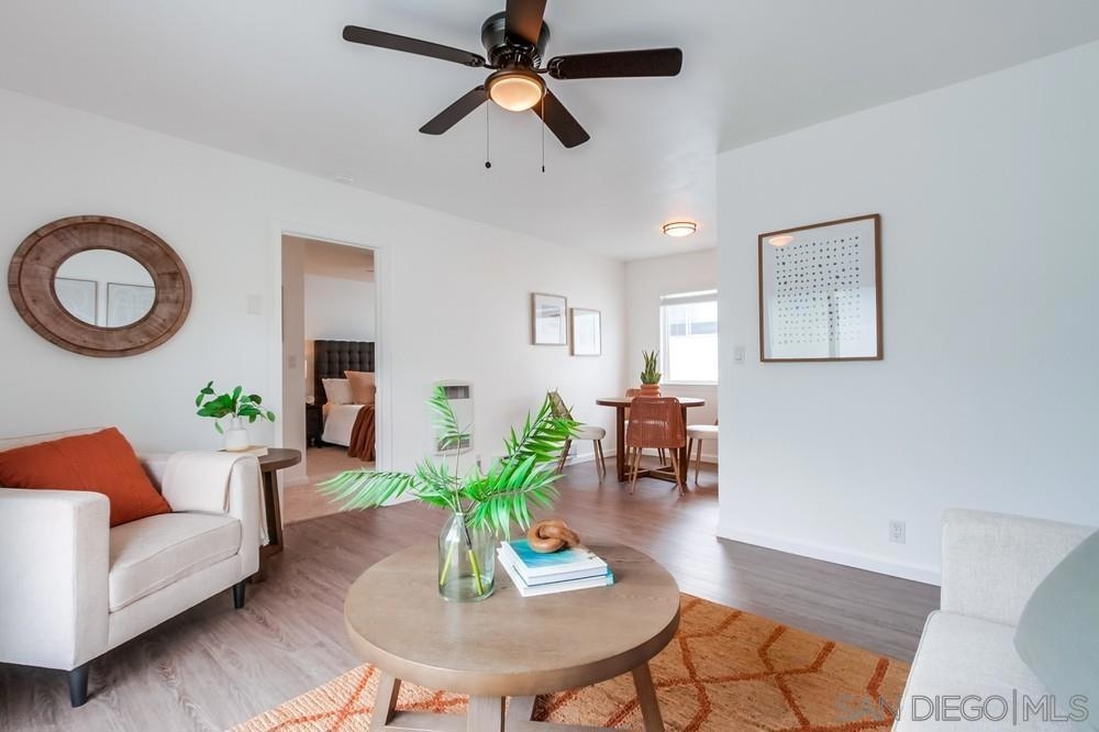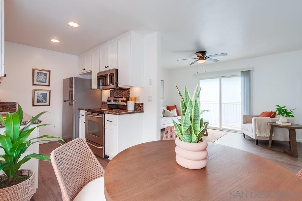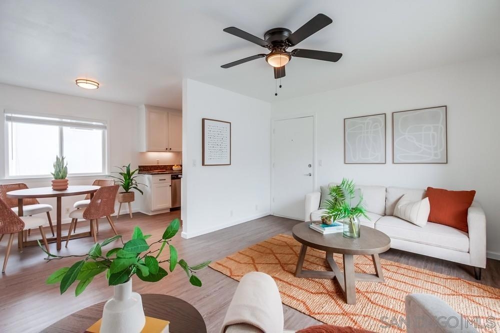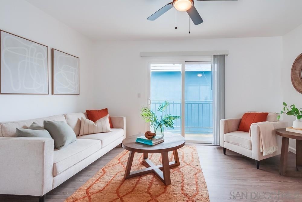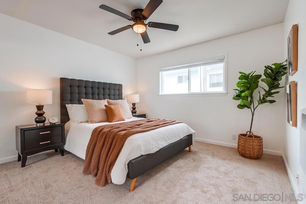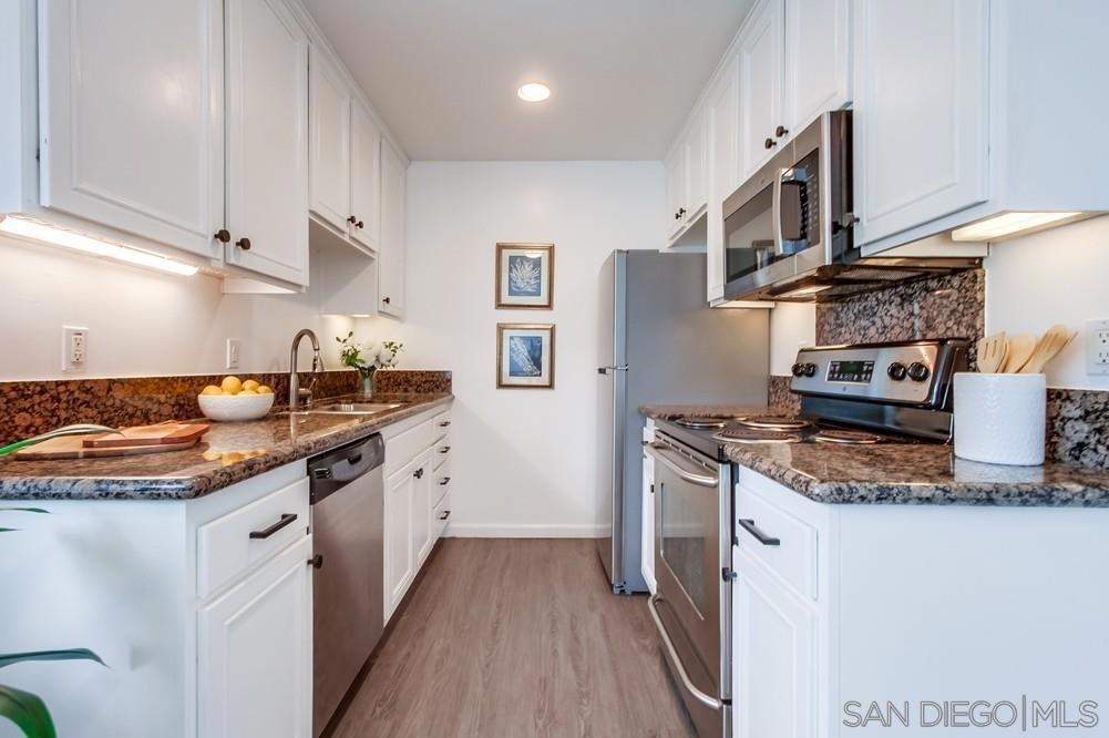 Beautiful 1 bedroom, 1 bathroom upper level property in the heart of Pacific Beach! This single level condo has no neighbors above and features a private washer/dryer in unit! Great layout with living room that flows to a long, covered balcony space, eat in kitchen area for dining and a light/bright feel. Upgraded flooring, stainless steel appliances and granite countertops in kitchen, brand new carpet in bedroom, ceiling fans, new slider/window glass & more. Gated complex, 1 assigned parking spot- off street, gated and covered carport. Walk to everything…beach, bay, shopping & entertainment…plus easy freeway access in and out of 92109!