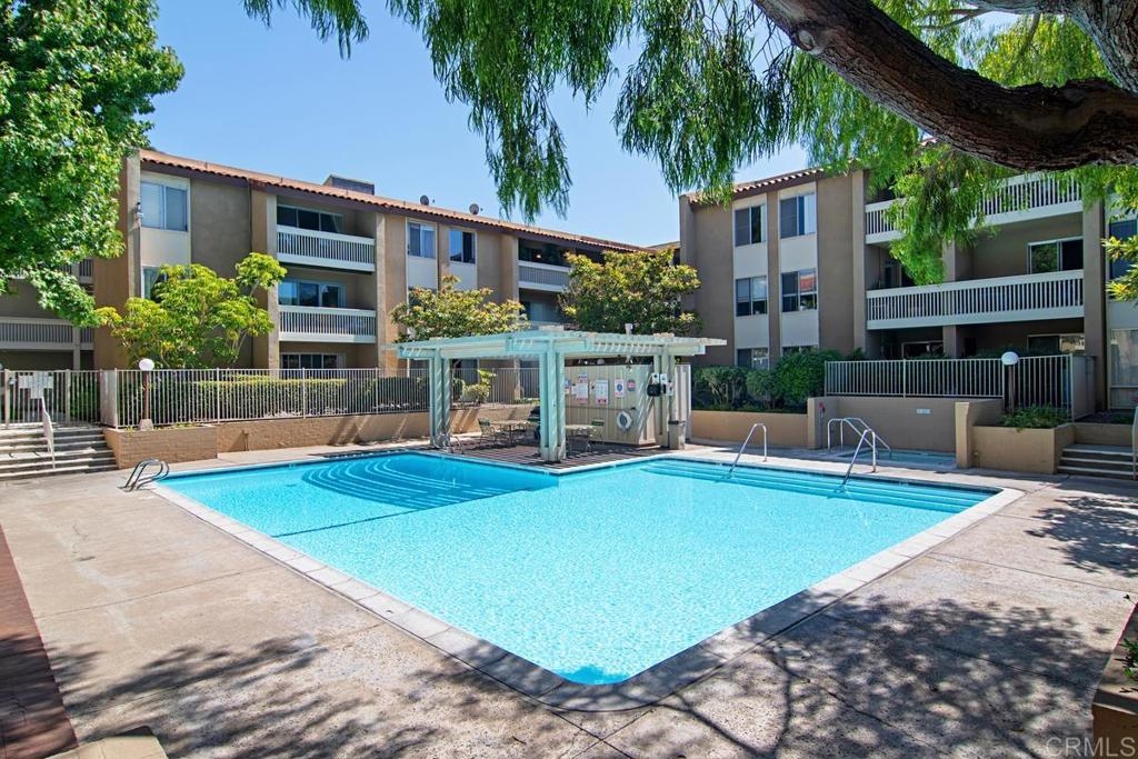 1st Floor, single story (no stairs). 2 bed/2 bath with their own bathrooms split by the spacious living room. Court 1 location. Refrigerator conveys. Great Roommate situation with the bedroom ensuites. New Windows installed in both bedrooms. 2 Parking Spots available. One is covered and one uncovered. Unit is steps away from your parking structure. Unit is in original condition. HOA Amenities include: 4 pools, lighted tennis courts, full gym, hot tubs, billiard room, meeting room, 24 hour on site security. Comes with two spaces. One covered and one uncovered. Community Laundry room on same level. Unit is all electric. Close to Plaza Shopping with Vons, Coffee and Pacific Beach Nightlife and Dining. Approx. 10 blocks to the beach.