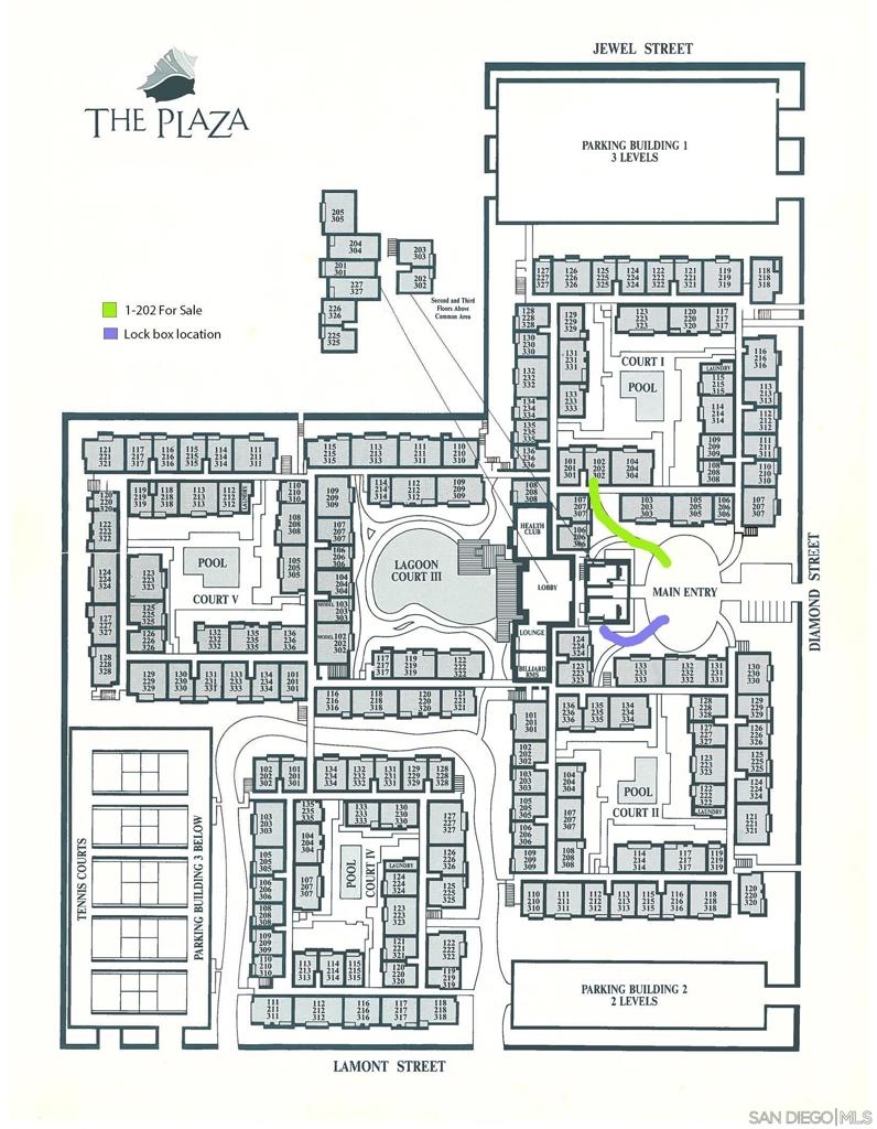 This is a nice pool facing unit at the resort style Plaza Condominiums. Unit faces west and gets lots of light, 3 closets, new refrigerator & microwave and 1 secured parking space. The Plaza boasts many amenities including swimming pools, hot tubs, gym, tennis courts, billiards room, resident lounge, BBQs, mature well maintained landscaping, and secured parking. Located in the heart of Pacific Beach, The Plaza is walking distance to the ocean and bay. The condo is also literally just steps to Garnet St. and great retail such as Trader Joe's, Von’s, Starbucks, restaurants, shopping and more