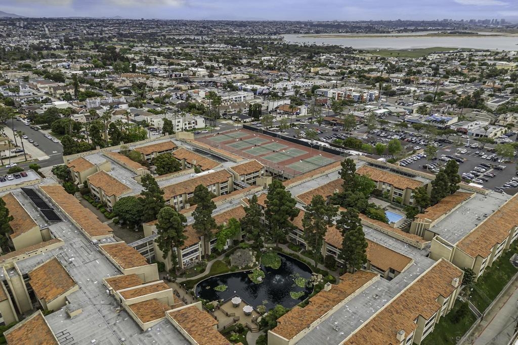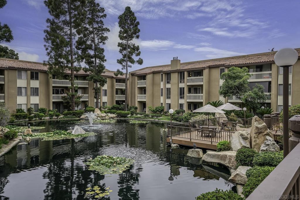 Welcome to The Plaza Condominiums. Ideally located in the center of the complex, enjoy the quietness and view over the beautiful lagoon with fountain. This spacious 2nd floor studio is ideally a few steps from the front lobby and close to the resort style amenities. The open space offers a variety of set up options. In Building 3 on a private short hallway, this unit west facing unit only shares one wall. The updated galley kitchen and bathroom feature light wood cabinets. A short walk to the covered garage parking spot and community amenities, this is a great investment property, first time buyer opportunity or second home. Enjoy al fresco living on the generously sized balcony. The Plaza Condominiums provide onsite management, 24 hour onsite security elevator access and guest parking. You will also have access to four swimming pools and spas, each with gas barbecues. Three of the pool areas have pool house facilities. Additionally, there are tennis courts, gym, saunas, billiard room, owners lounge. Walk, bike or run to the beach or bay. Close to shops, restaurants, exercise studios and everything PB has to offer. Embrace the best of urban living in Pacific Beach at The Plaza Condominiums!