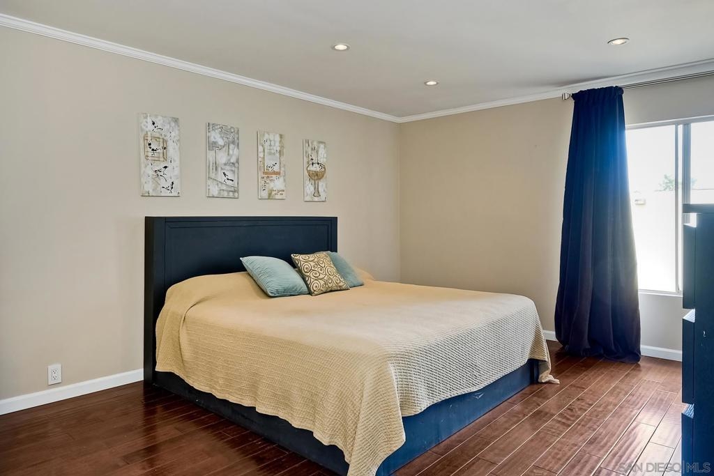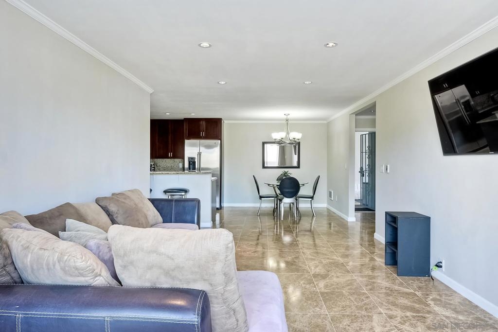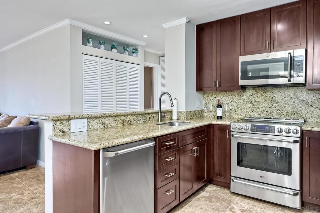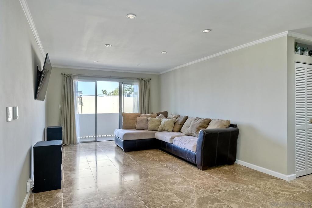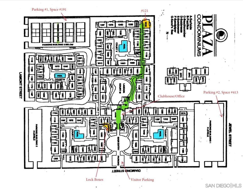 Spacious, ground-level 2 BR/2BA end unit condo in The Plaza resort-style community. Enjoy the ocean breeze: West facing and only 1.5 miles from the beach. Features open kitchen/dining area, recessed lighting, and stainless steel appliances. Complex features clubhouse, movie theater, billiards room, lagoon, swimming pools/spas, BBQ grills, and tennis courts. Located in the heart of Pacific Beach, close to shopping, restaurants, and entertainment. Two assigned garage parking spaces. VA/FHA approved. Complex Features: ,,,,,,,,, Sewer: Sewer Connected Topography: LL