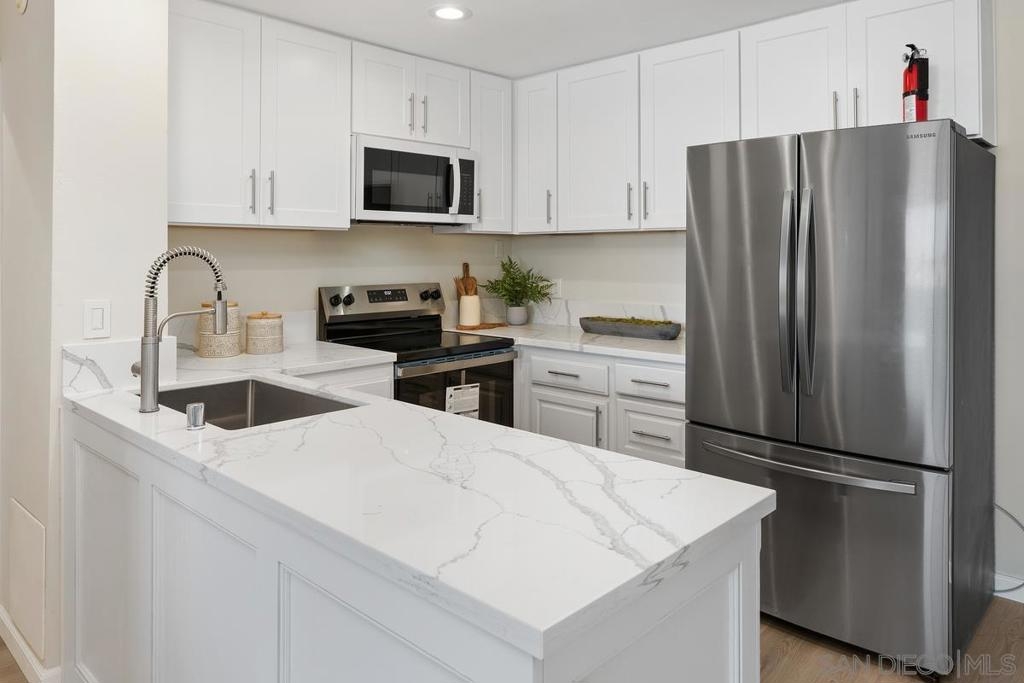 Fully Renovated 2BR/2BA Condo in The Plaza, Pacific Beach – Move-In Ready! Mid Term Rentals allowed! Experience modern living in this completely renovated 2-bedroom, 2-bathroom condo (1,033 sq. ft.) at The Plaza in Pacific Beach. This west-facing unit features all-new flooring, custom cabinets, quartz countertops, updated closet doors, new bathrooms and fixtures—offering a true top-to-bottom transformation. Enjoy bright, open living spaces and sunset views from your private balcony. The open floorplan is perfect for entertaining, and the unit’s location provides unbeatable walkability to shopping, dining, and the beach. Unlike most units in The Plaza, this condo is fully upgraded and move-in ready—no detail overlooked. This is an excellent HOA and includes a secure building, tennis courts, multiple pools and hot tubs, two underground parking spaces, outdoor grilling areas, and more—within a true multi million-dollar neighborhood.
