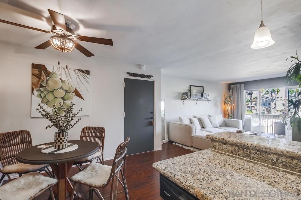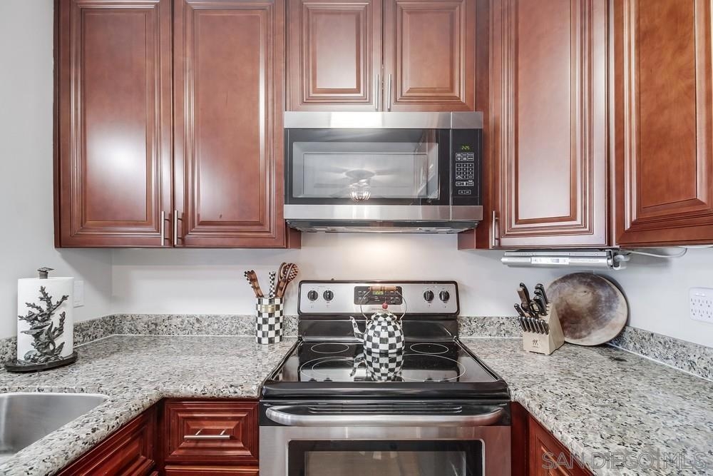 Beautifully condo in the resort-like setting of The Plaza. Second story, eastern facing unit with tons of natural light. Large, open kitchen/living area with laminate flooring, double sink vanity and luxurious rain shower. Large bedroom includes two large closets with floor to ceiling mirrors. Newer stainless steel appliances, custom soft-close cherry cabinets, granite counter tops in the kitchen and vanity. Amenities:swimming pool, hot tub, tennis courts. Walking distance to the ocean/bay. 24/7 security.