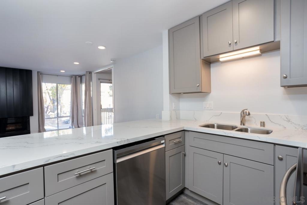 Introducing Your Perfect Beach Retreat in Pacific Beach! Experience the ultimate beach living in this stunning 2-bed, 2-bath condo, 900 sqf condo. Step into your very own modern beach oasis with renovated Lux plank floors, shaker wood cabinetry, and quartz counters. The kitchen boasts an eat-at-bar with stainless steel appliances for effortless cooking or entertaining. This single-story, 2nd-floor, end unit features a fireplace, floor-to-ceiling windows, and a large slider to your private patio. Located in a gated resort-style community, enjoy pools, a clubhouse, and tennis courts. Rest easy with underground parking. Explore the vibrant local scene with shops and restaurants within walking distance. The beach or bay is just a quick bike ride away. Don't miss out on this Pacific Beach gem!