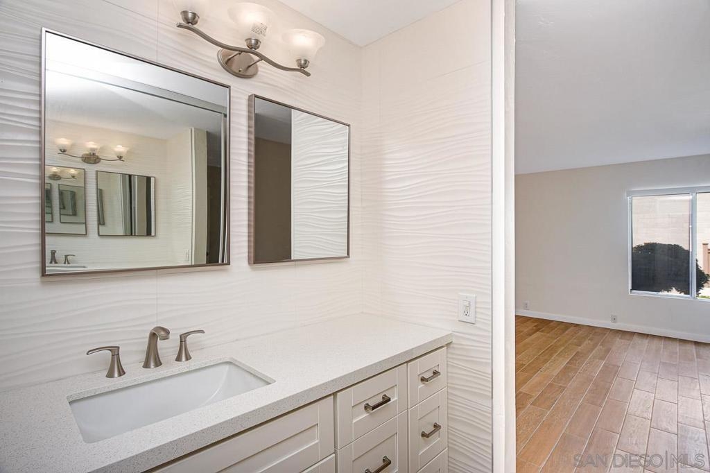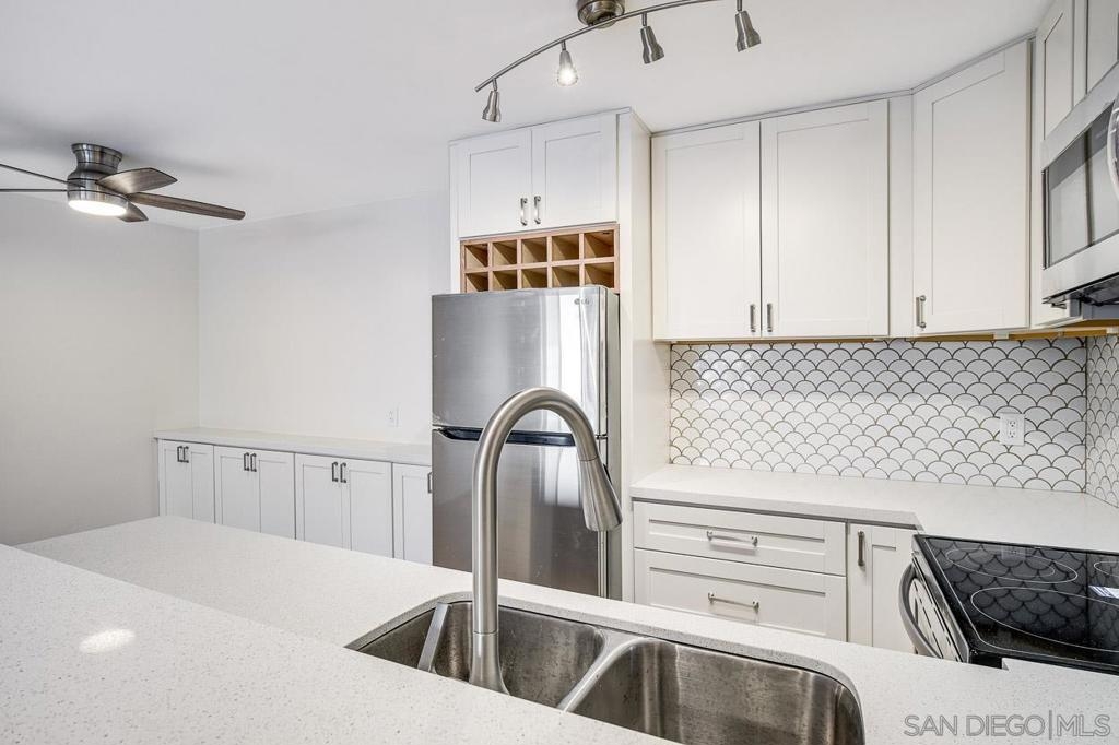 BRAND NEW EXTENSIVE REMODEL 2 bedroom 2 bathroom rare condo at The Plaza in Pacific Beach with 2 non-tandem covered garage parking spots. Brand new finishes include porcelain faux wood flooring throughout, new custom white shaker kitchen and bath cabinetry, quartzite counters throughout, extended kitchen storage and cabinetry, stainless steel appliances, and completely new bathrooms. Resort style amenities include 4 pools and spas, 5 tennis courts, full-size gym, bbq's, on-site management and 24 hour security. Approximately 1 mile from Law St beach to the west and Crown Point beach to the south. Walking distance to shopping and dining. Equipment: Garage Door Opener Sewer: Sewer Connected Topography: LL