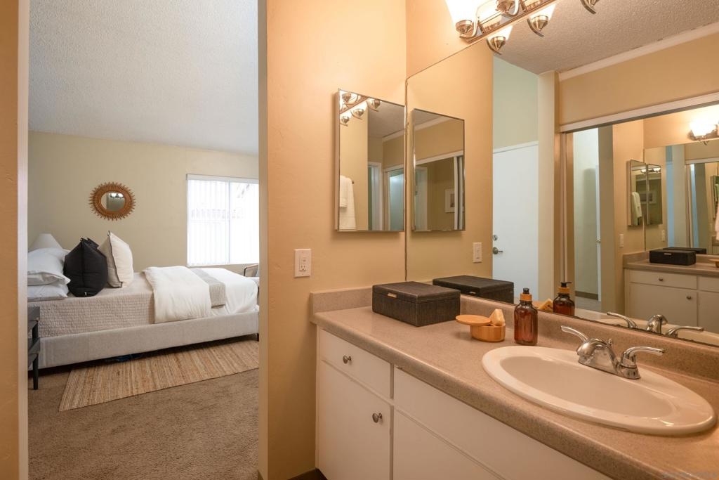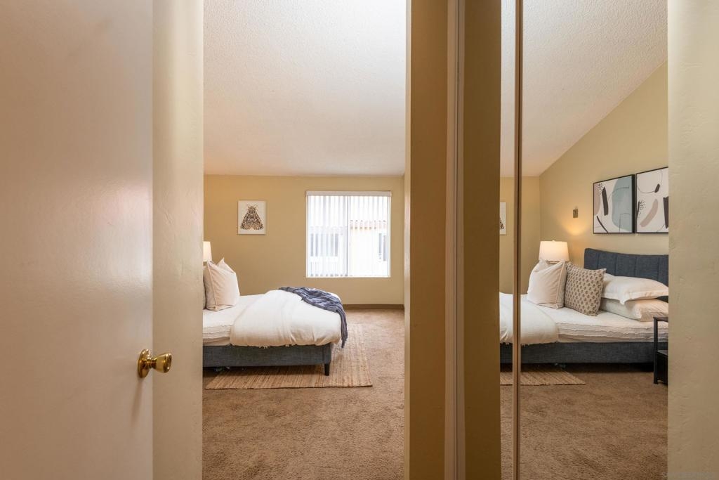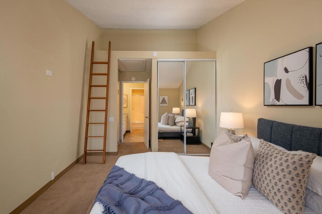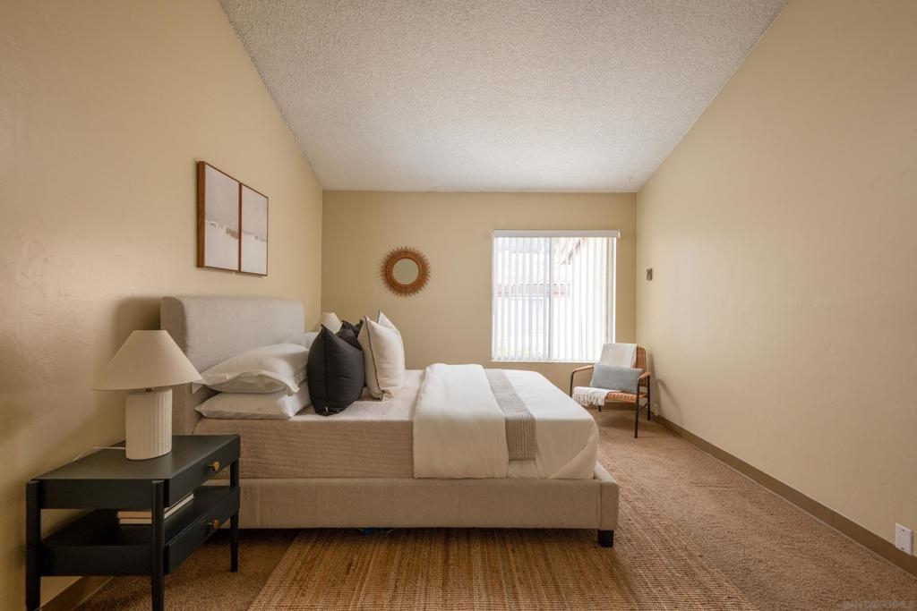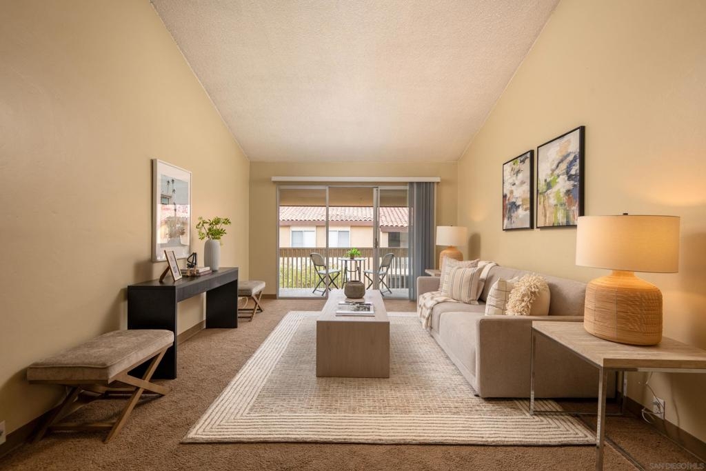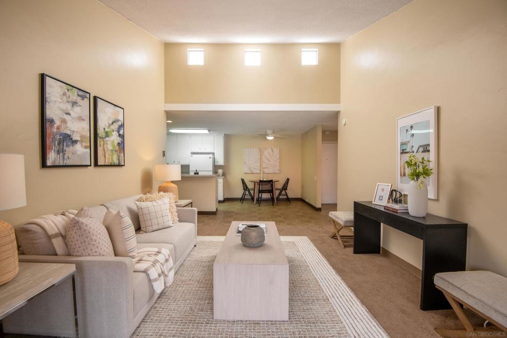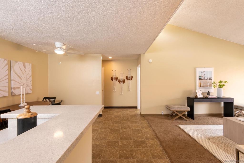 Coveted top floor corner unit in the quiet and secluded Court 4 building. Vaulted ceilings and a west facing orientation provide an airy feel and amazing natural light. This unit also has 2 assigned parking spaces where most of the Plaza units only get 1. Walking distance to Vons, Trader Joes, The Broken Yolk, Konitos, Rock n Box, Fitenss West, Starbucks and so many other awesome spots. A quick bike ride down Diamond to the beach is how you'll want to be spending your time! This unit is a blank slate waiting for you to make it your dream home!