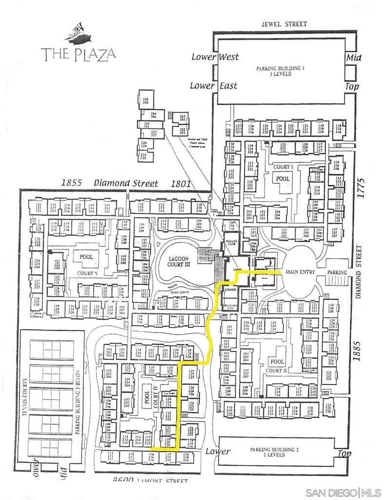 This is a wonderful 2 bedroom, 2 bath split master bedroom condo at the highly desirable Plaza condominiums. Unit has gas fireplace, spacious rooms, lots of closet space and a patio. The tub has been converted into a walk in shower with custom tile and support bars. Located in the heart of Pacific Beach, The Plaza is just a 15 minutes walk to the ocean and bay. The unit door is just a 3 minutes walk to Von’s, Starbucks, banks, restaurants, shopping and more. The Plaza boasts many resort style amenities including swimming pools, hot tubs, gym, tennis courts, billiards room, residents lounge, BBQs, mature well maintained landscaping, secured parking and onsite staff & property attendants. The one amenity that sets The Plaza apart from all other complexes in the area is the centrally located lagoon. It is stocked full of koi, turtles and has been designated as a wildlife habitat by the city of San Diego. It is best enjoyed by relaxing on the veranda overlooking the lagoon. Complex Features: ,,,,,,,, Sewer: Sewer Connected Topography: GSL