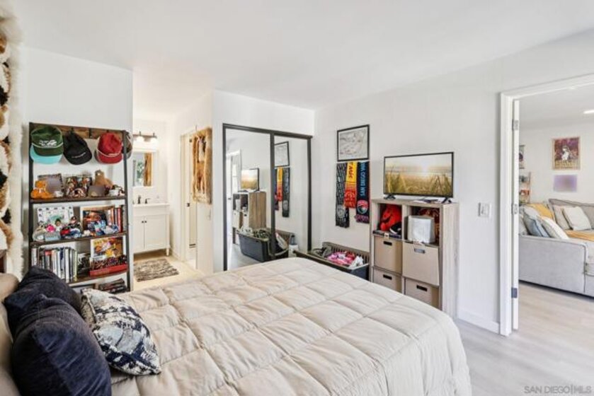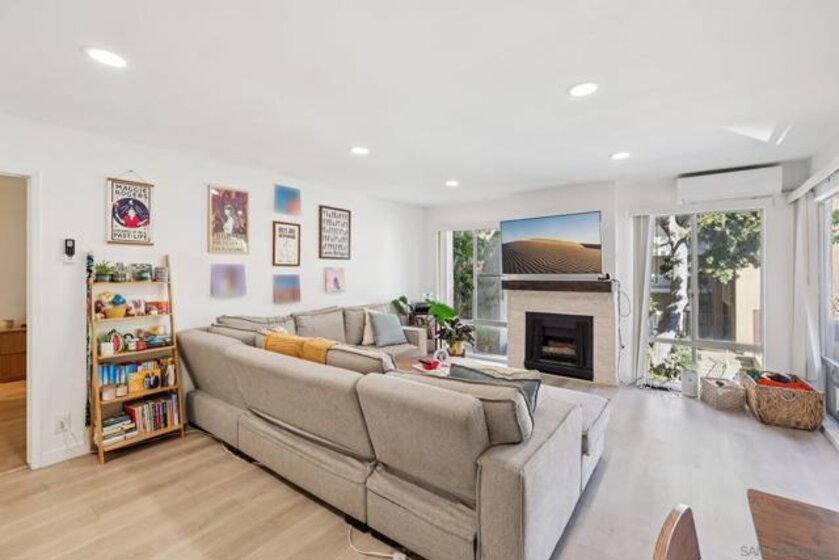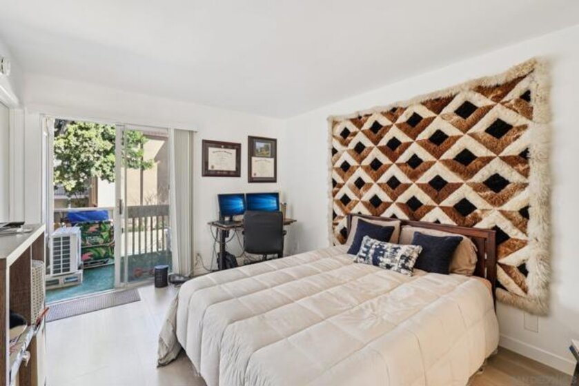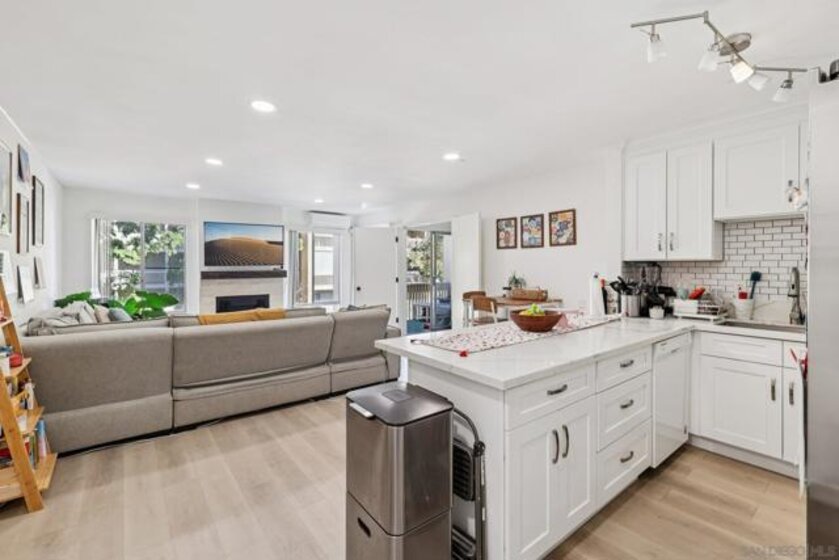 The Plaza condos is luxury living at its finest with pools, billiards, movies and more in the heart of PB! Condo is gorgeous and upgraded. Unit is light-filled with abundant white marbled granite counters w/ample prep space & pull-up seating, white tile backsplash, stainless steel appliances. Split a/c. Baths feature modern vanities. Dual primary suites w/walk-in closets. Large private patio. Serene pool view. Large deck. Gated & security onsite. The dues are a bit higher than average but at The Plaza, you can see where your dues are going. The roofs of this building was recently replaced. There are lots of amenities and incredibly well maintained. There are security people at the property in addition to being gated. Dog-potty turf within complex. Walking distance to Vons Shopping Center. 11-Blocks from beach.