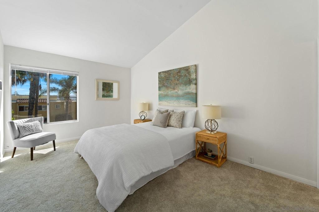 Top-floor remodeled bay-view home with vaulted ceilings! Skylights. Two primary bedrooms. Extra long balcony. Tons of closet space. Two secure parking spaces (one in garage). Freshly painted, new carpet, move-in ready! The well maintained Plaza community offers multiple pools/spas, tennis courts, a fully-equipped gym, 24/7 security, and more. Walking minutes to Vons, Trader Joe’s, restaurants, and beach!
