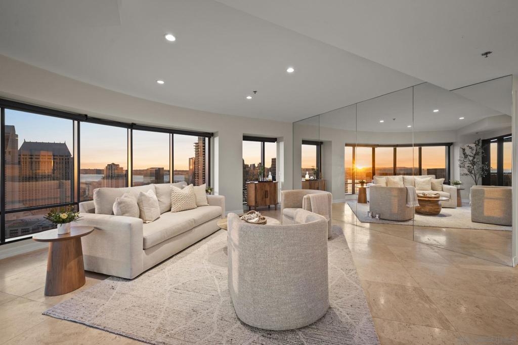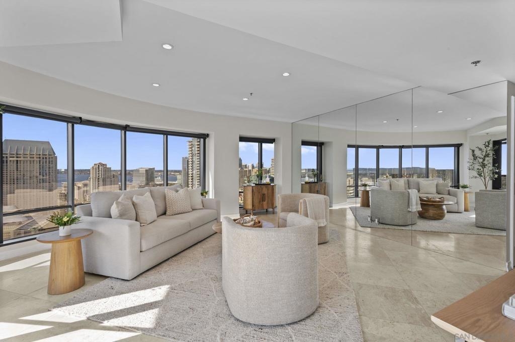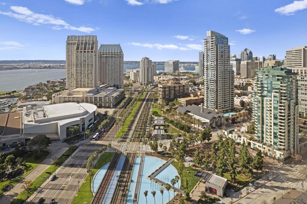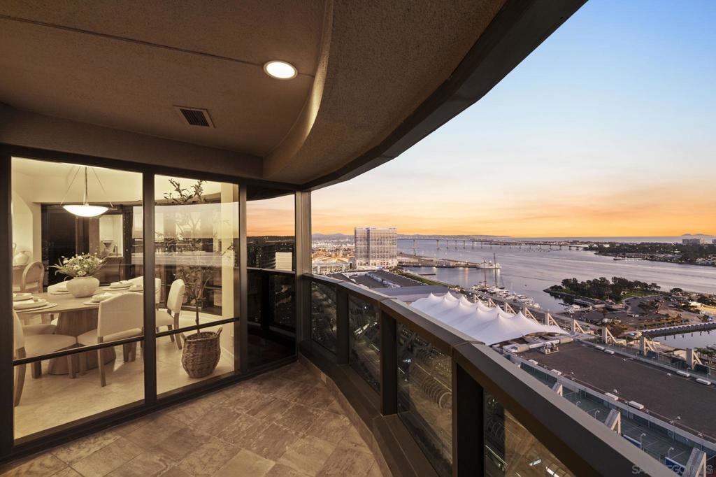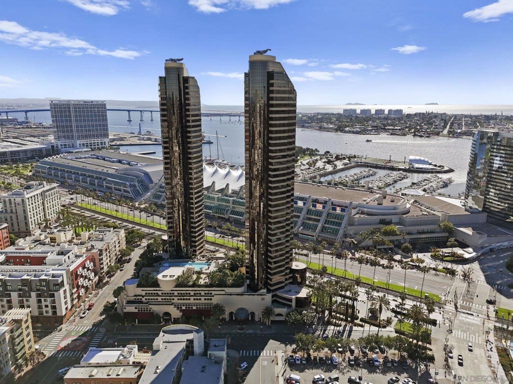 30th-floor bubble unit in the West Tower at the sought-after Harbor Club, featuring panoramic views of the Pacific Ocean, San Diego Bay, Downtown skyline, Coronado, and the Coronado Bridge. This 2-bedroom, 2-bath residence offers 1,474 sq ft of well appointed living space and a west-facing balcony with steady ocean breezes and sunset views. Harbor Club residents enjoy a full range of amenities including a heated lap pool, fitness center, sauna, club room, outdoor BBQ areas, and 24-hour front desk service. Two secured parking spaces included. Highly walkable location near the Gaslamp Quarter, Convention Center, Seaport Village, shopping, Petco Park, and the Downtown Marina.