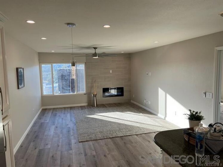 Beautifully refurbished 1bd/1.5ba condo with newer kitchen, SS appliances, luxury vinyl wide plank flooring, LED lighting & new primary shower! Enclosed patio off the bdrm provides extra space for office, storage or yoga mat! Condo has 1 covered parking spot & 1 uncovered. Located on the top floor of the complex with westward views overlooking Snapdragon Stadium. Fabulous location w/trolley station close by as well as expanded SDSU Mission Valley project. Walking distance to Snapdragon & SDSU. Residents of Mission Ridge enjoy access to premium amenities, including a large swimming pool and spa, well-maintained tennis courts, a fully equipped fitness center, and a welcoming clubhouse. The outdoor barbecue and beautifully